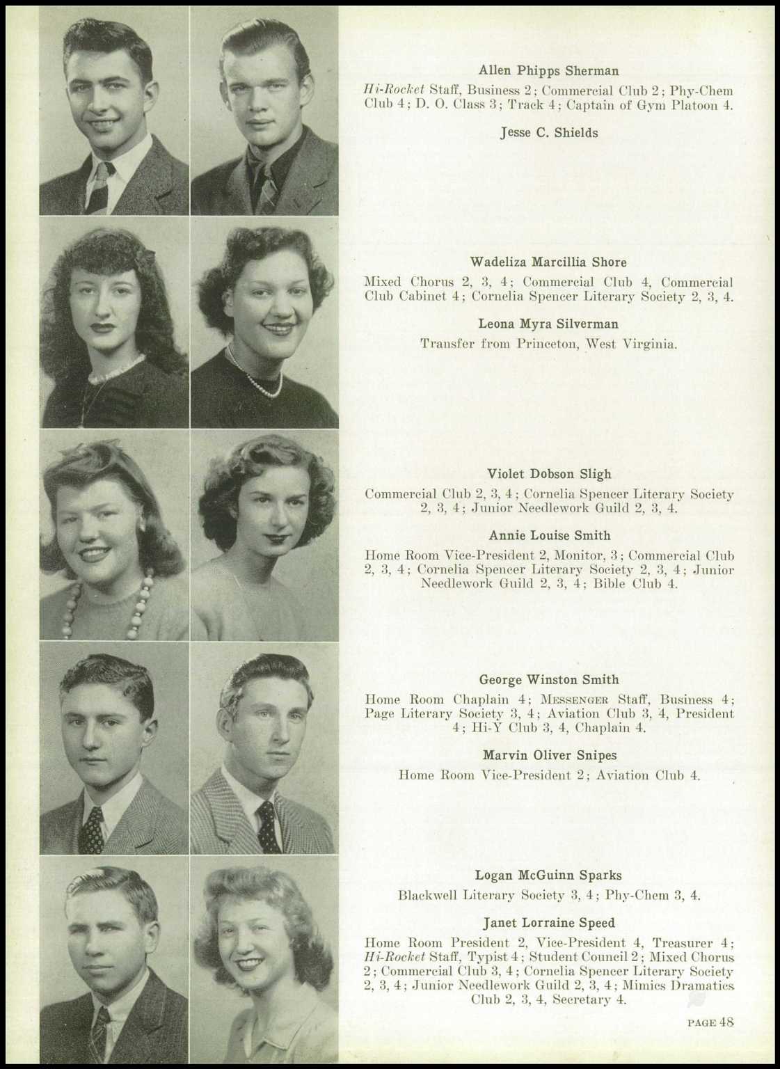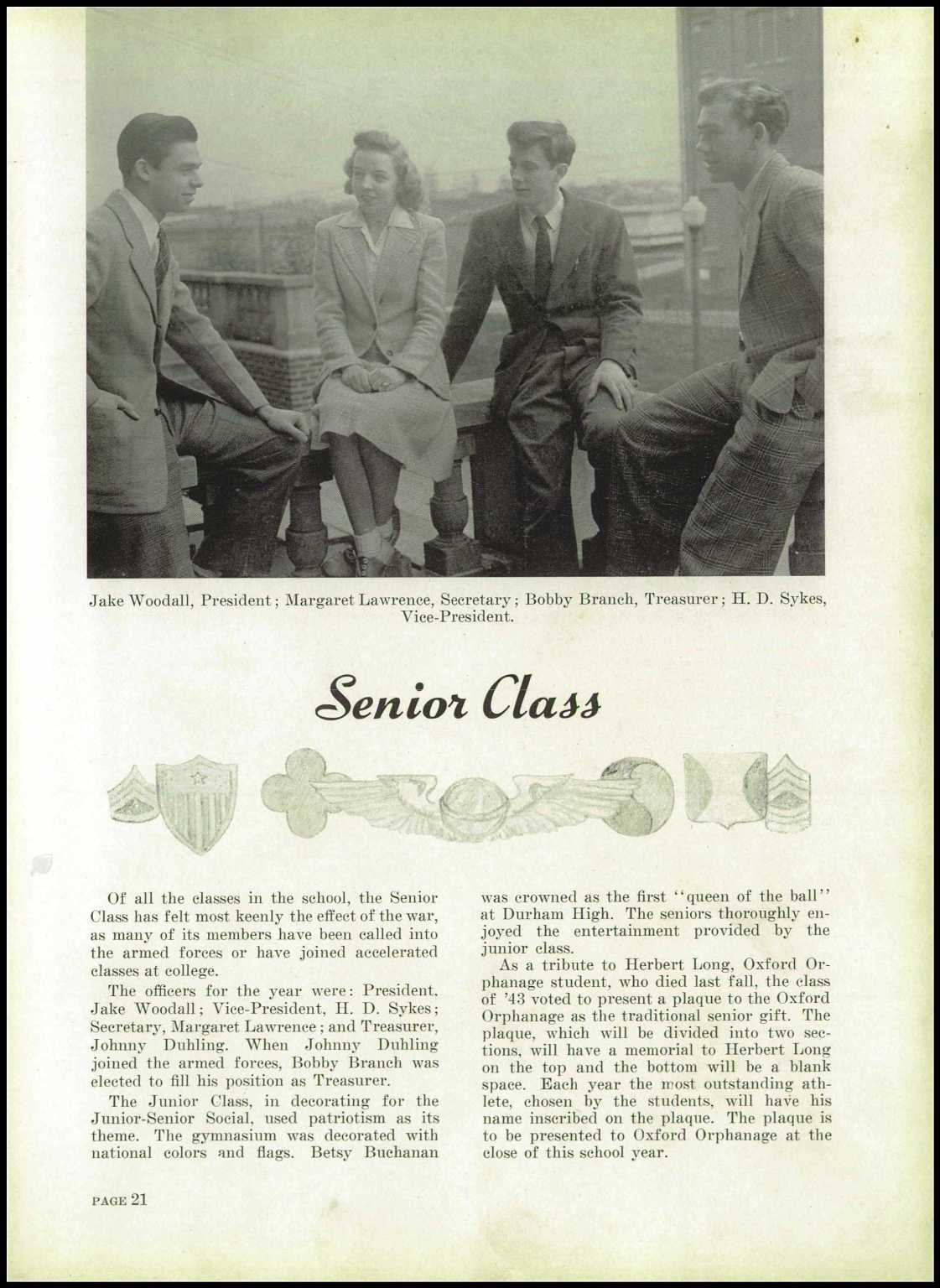 The 1943 Durham High School Yearbook is somber. These students are fully aware that they are in the midst of Our War. Below are a few pages from this yearbook with Logan Sparks' photo in the last page.
