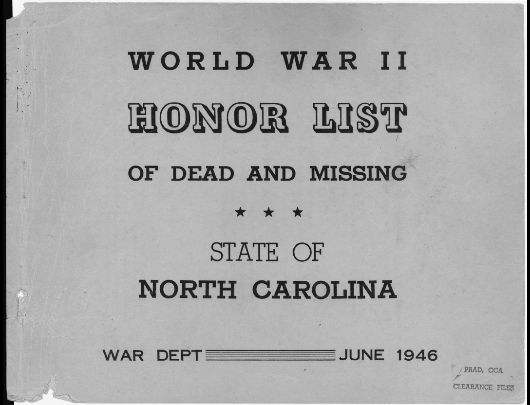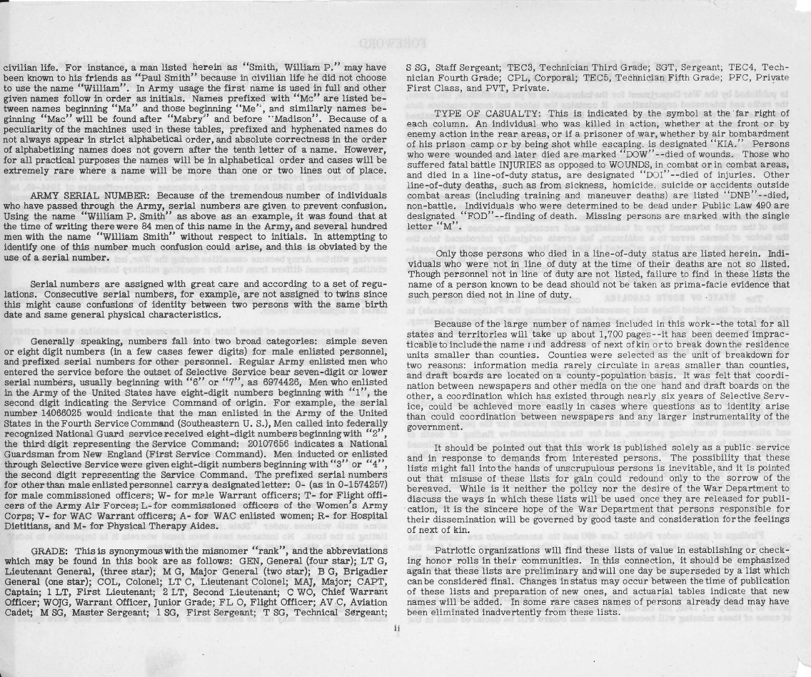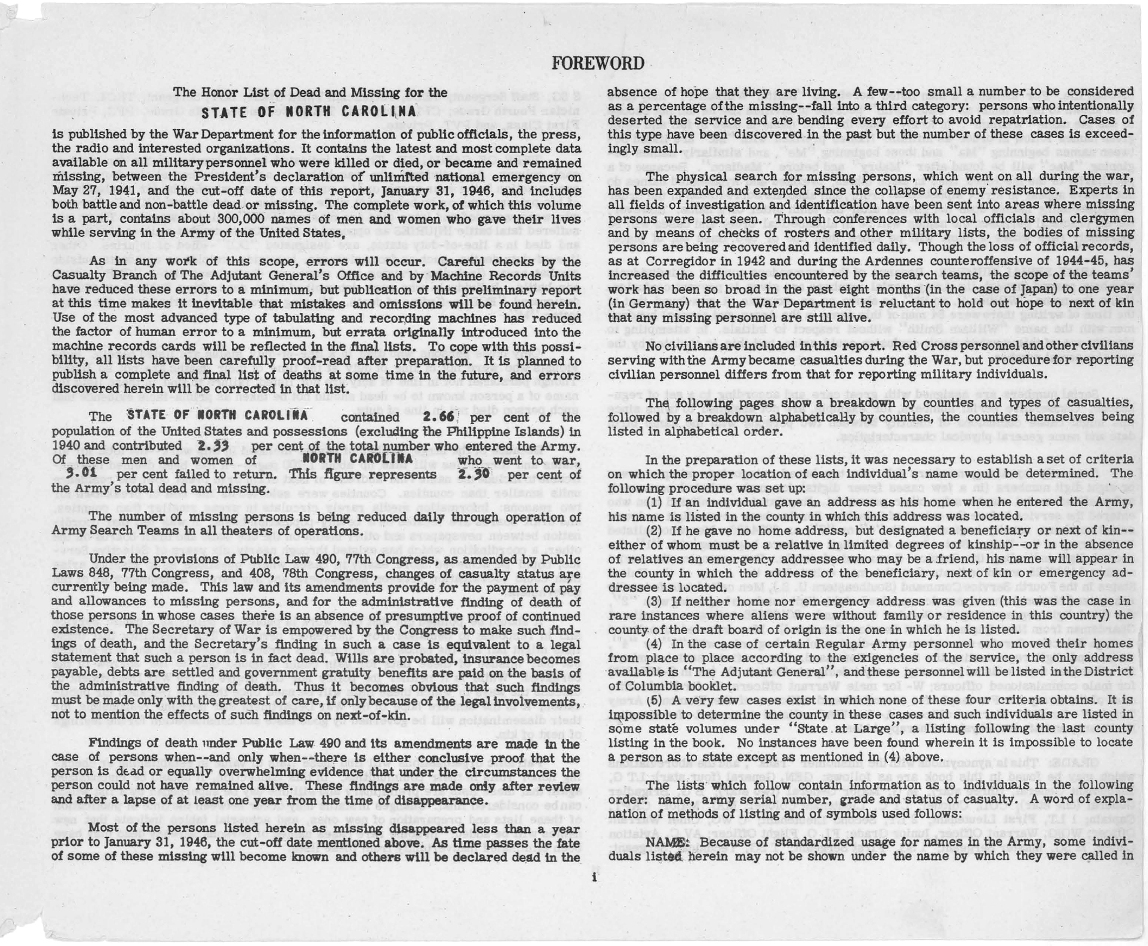 The World War II Honor List source : https://catalog.archives.gov/id/305302 Following the cover page are two pages from the Foreward.