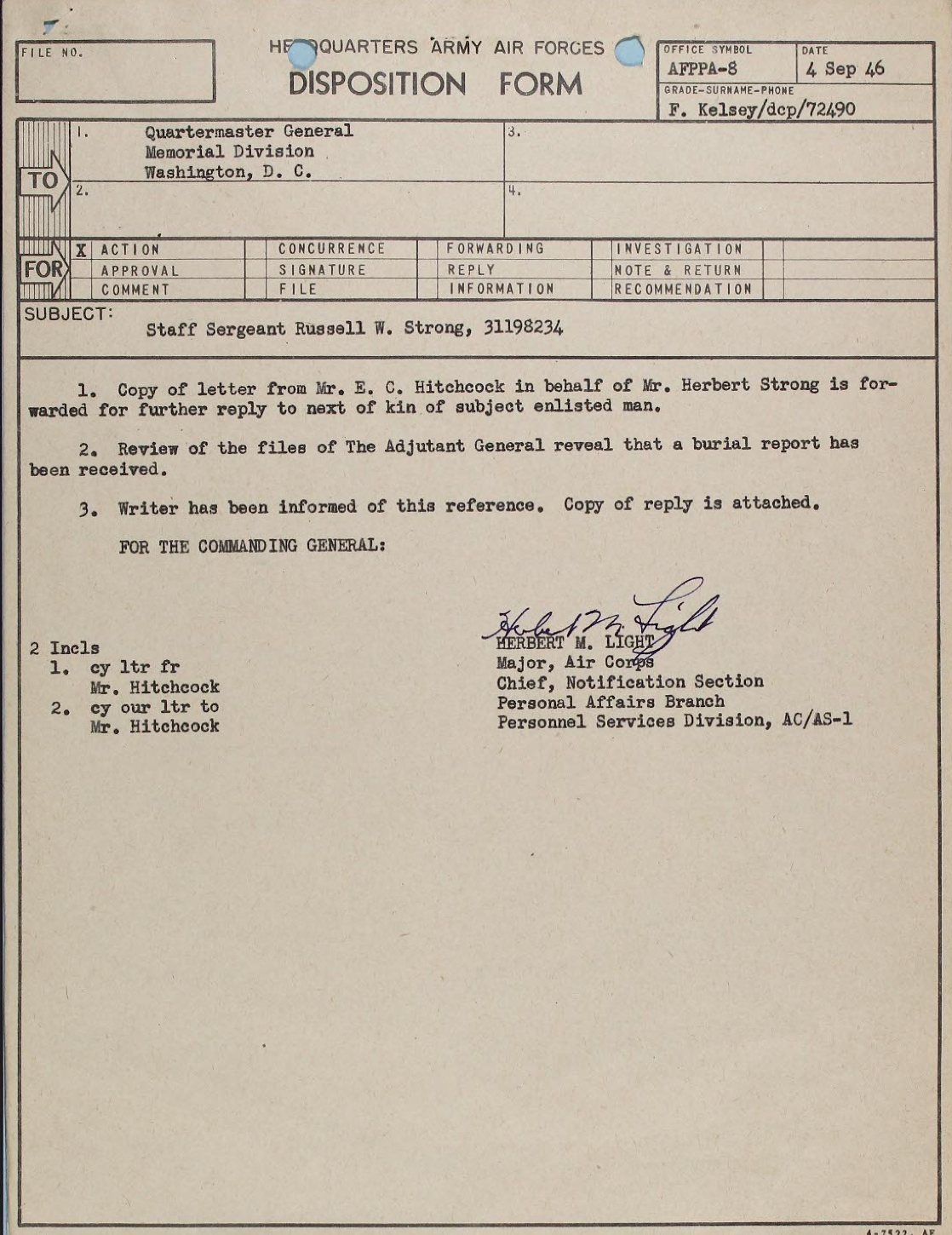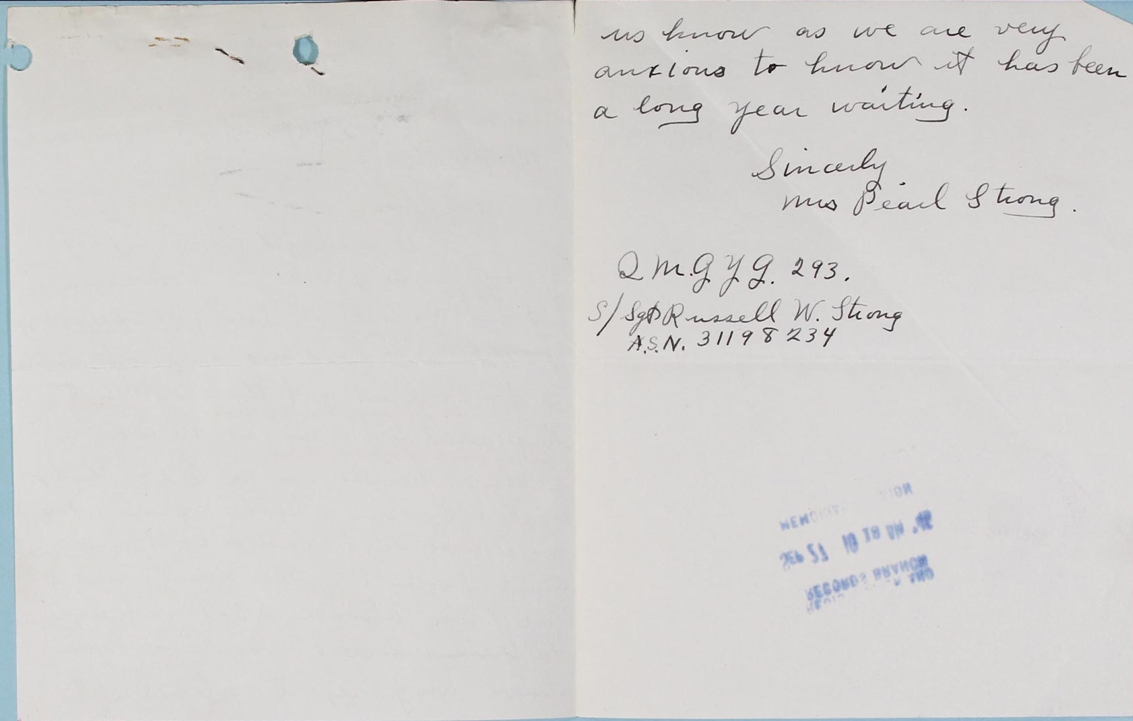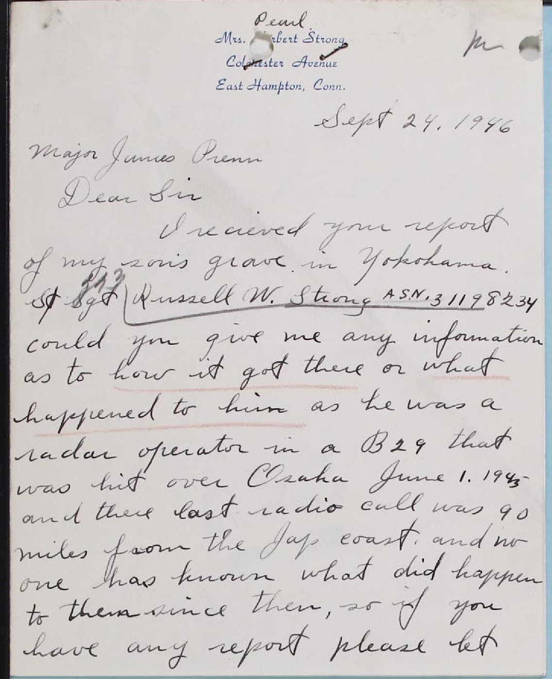 A friend of the family, Mr E C Hitchcock, wrote a Mrs Strong wants to know how her son got there. |