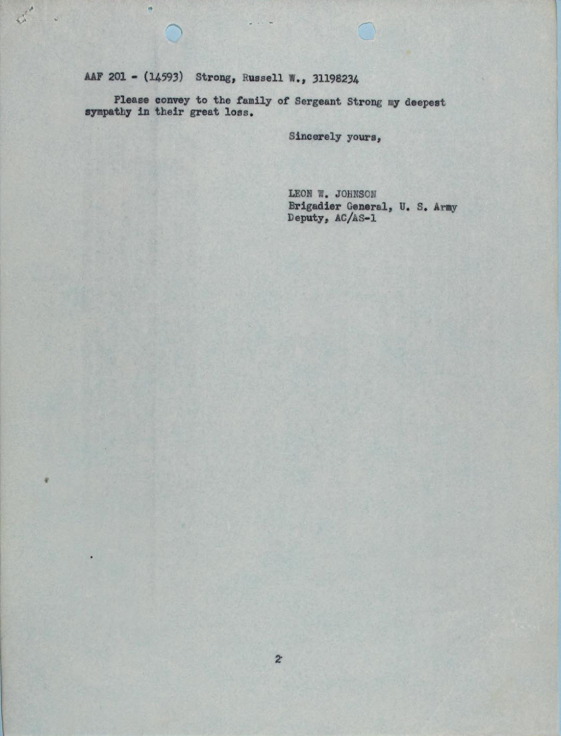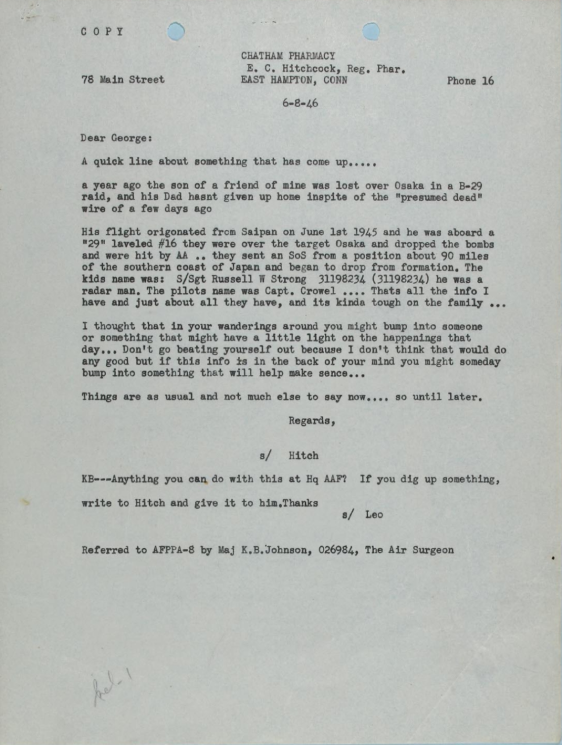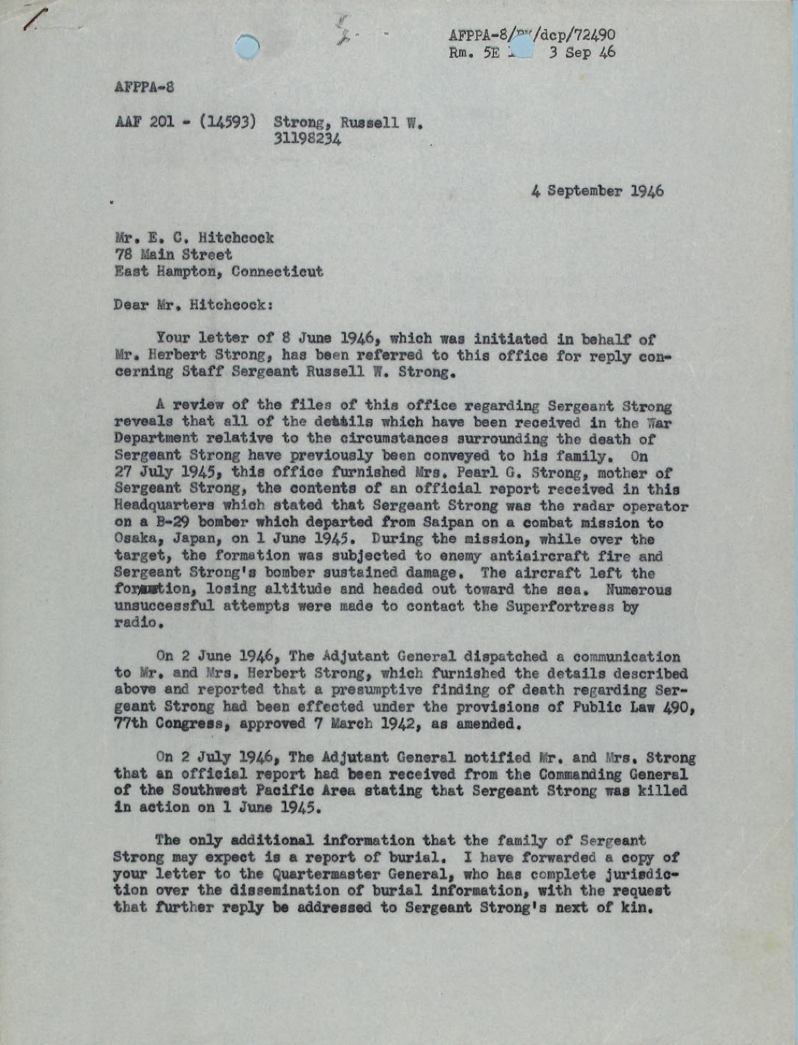 A friend of the family, Mr E C Hitchcock, wrote a Mrs Strong wants to know how her son got there. |