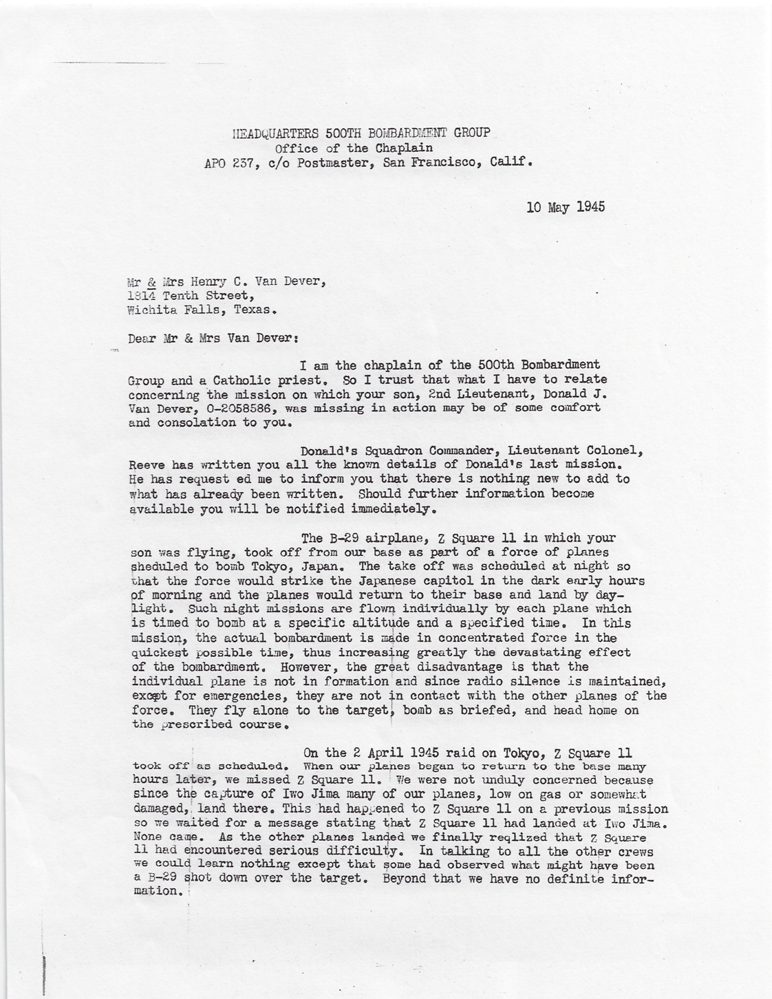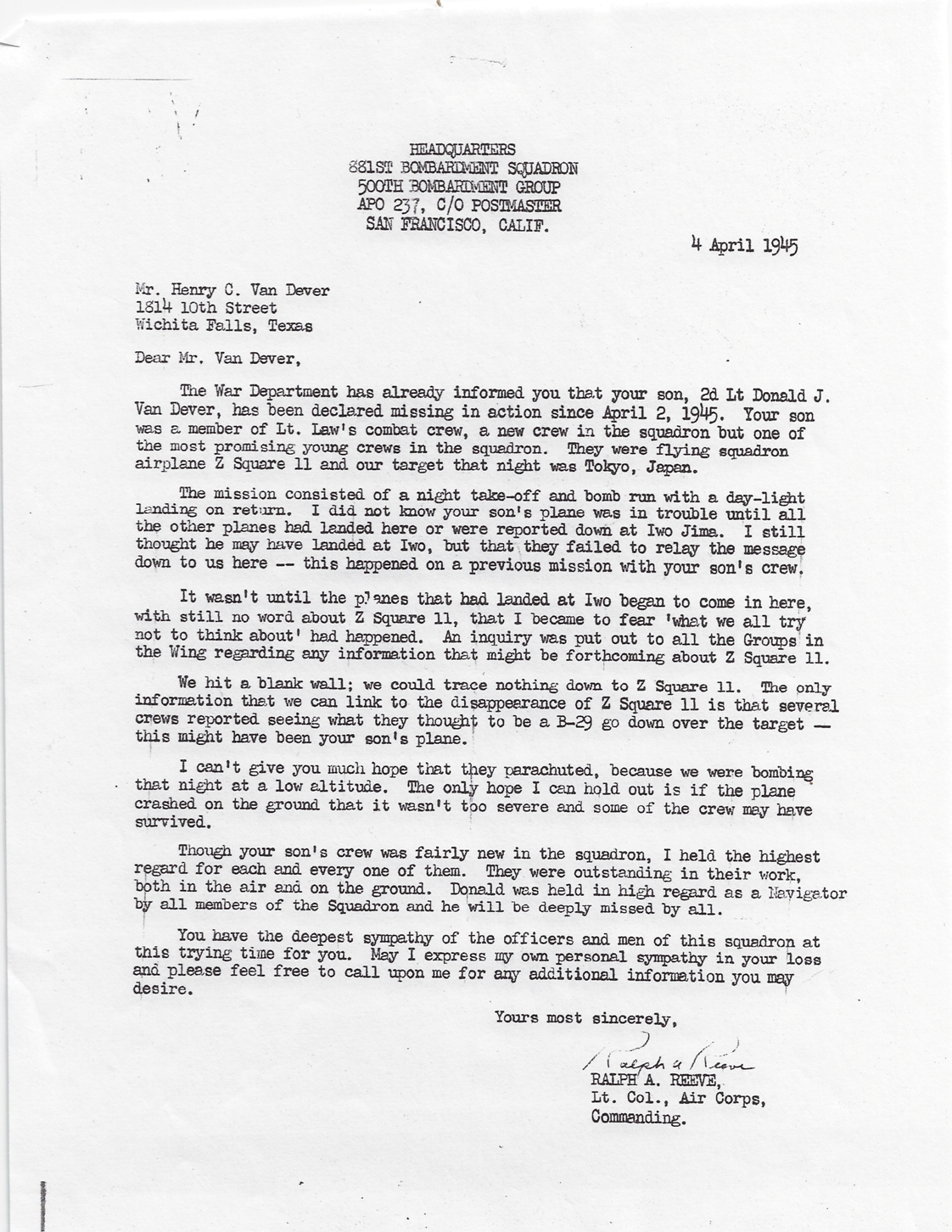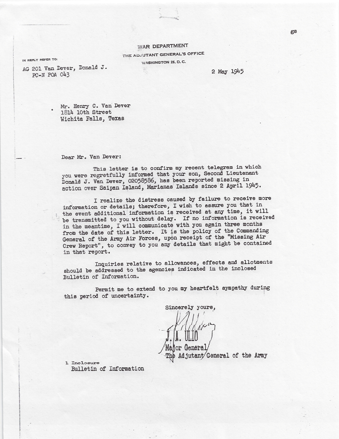 The letters in this page are dated 1945 and are from the These letters require no commentary. source: The Van Dever Family |