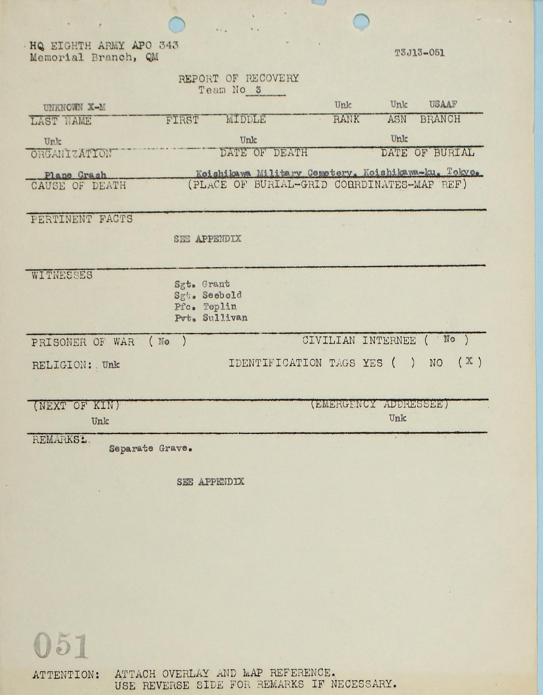 Sgt Walk was designated as Unknown X-M.