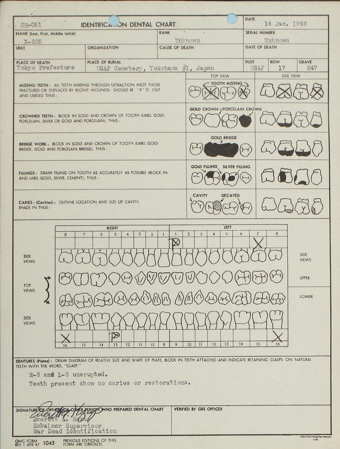 IDENTIFICATION DENTAL CHART 14 JANUARY 1949