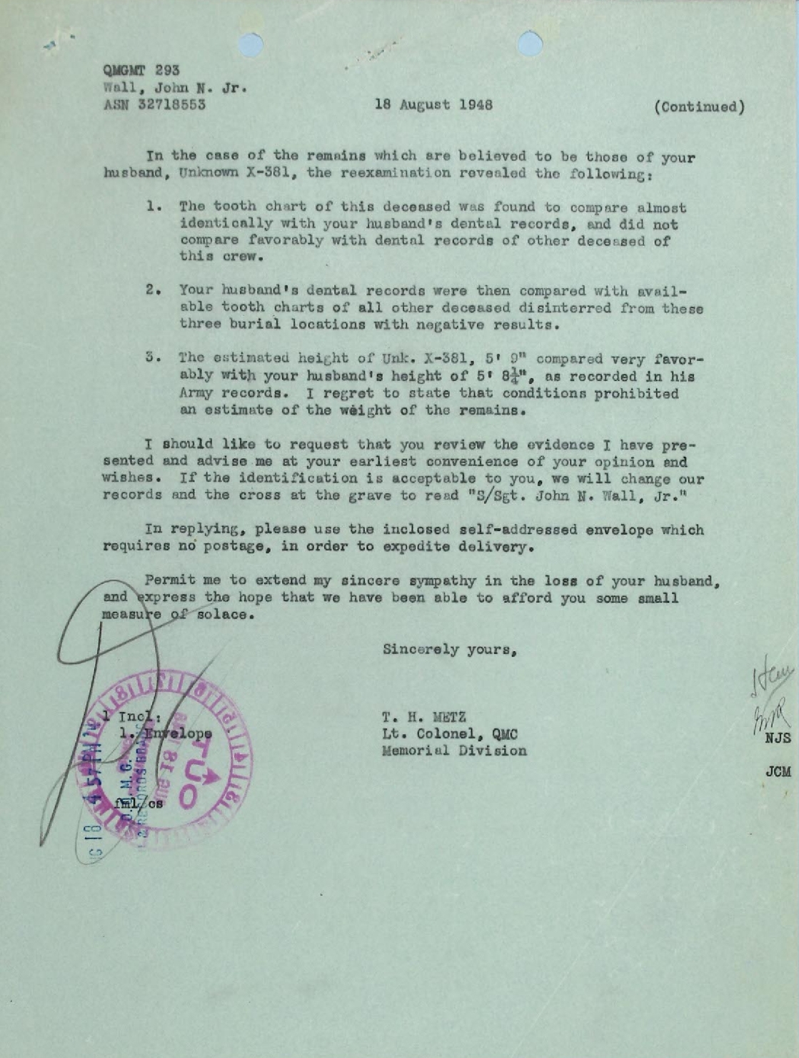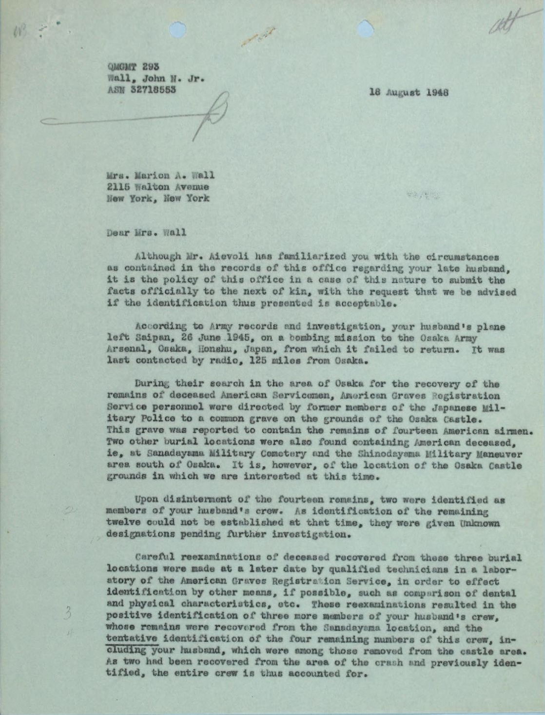 Home ________________________________________ On 18 August 1948 Mrs Marion Wall was sent the |