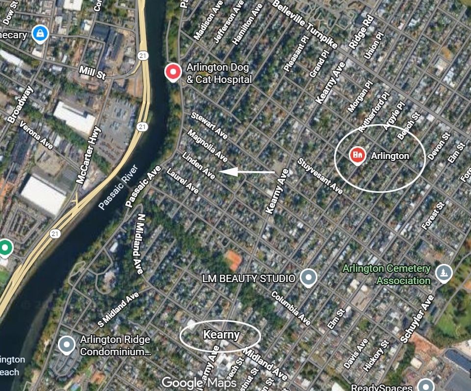 LOCATION OF HOME AT 106 LINDEN AVENUE KEARNY