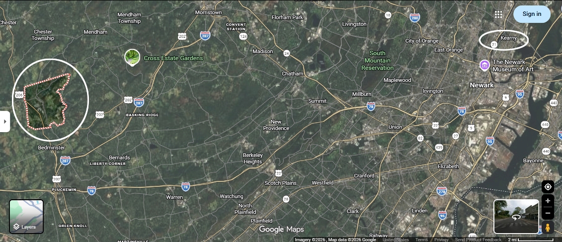 AT THE UPPER RIGHT IS KEARNY, NEW JERSEY GLADSTONE, NEW JERSEY, IS IN THE WHITE CIRCLE AT THE LEFT