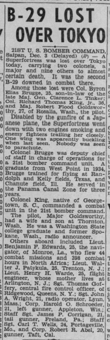 B-29 flown by Major Robert Goldsworthy.