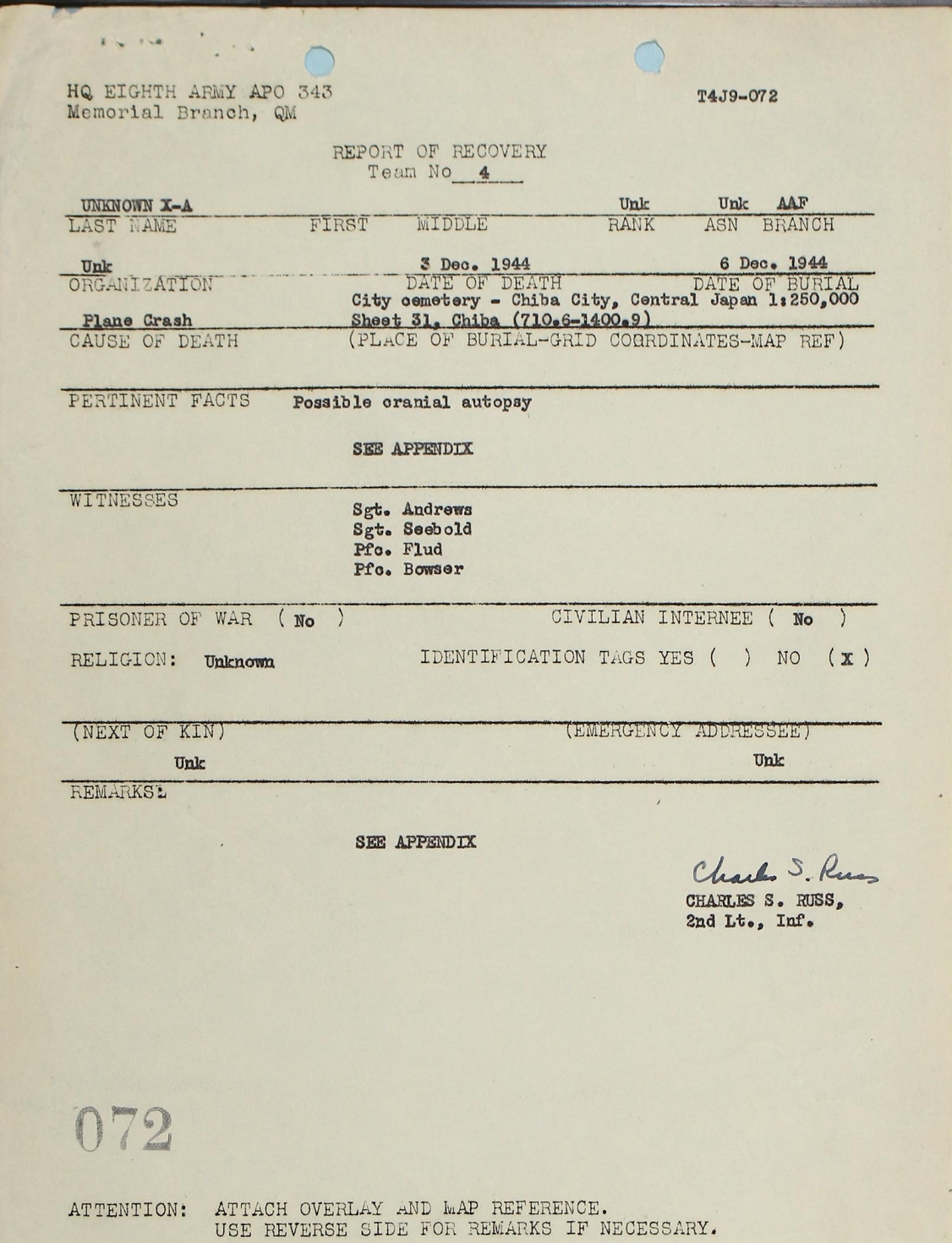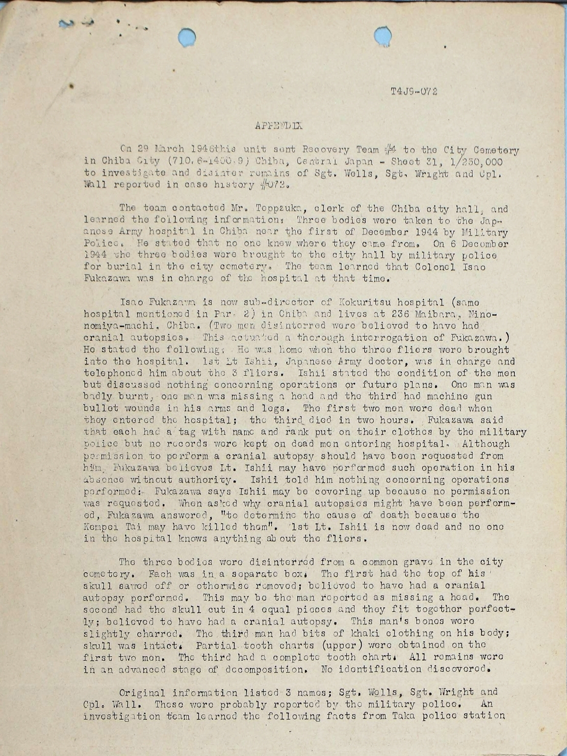 The remains of Lt Warde, SSgt Wells, and Sgt Wright were A two page APPENDIX is at bottom of page. This document relied solely upon Japanese information. Below is a page from the book Paragraph 2 : " No one knew where they came from " |