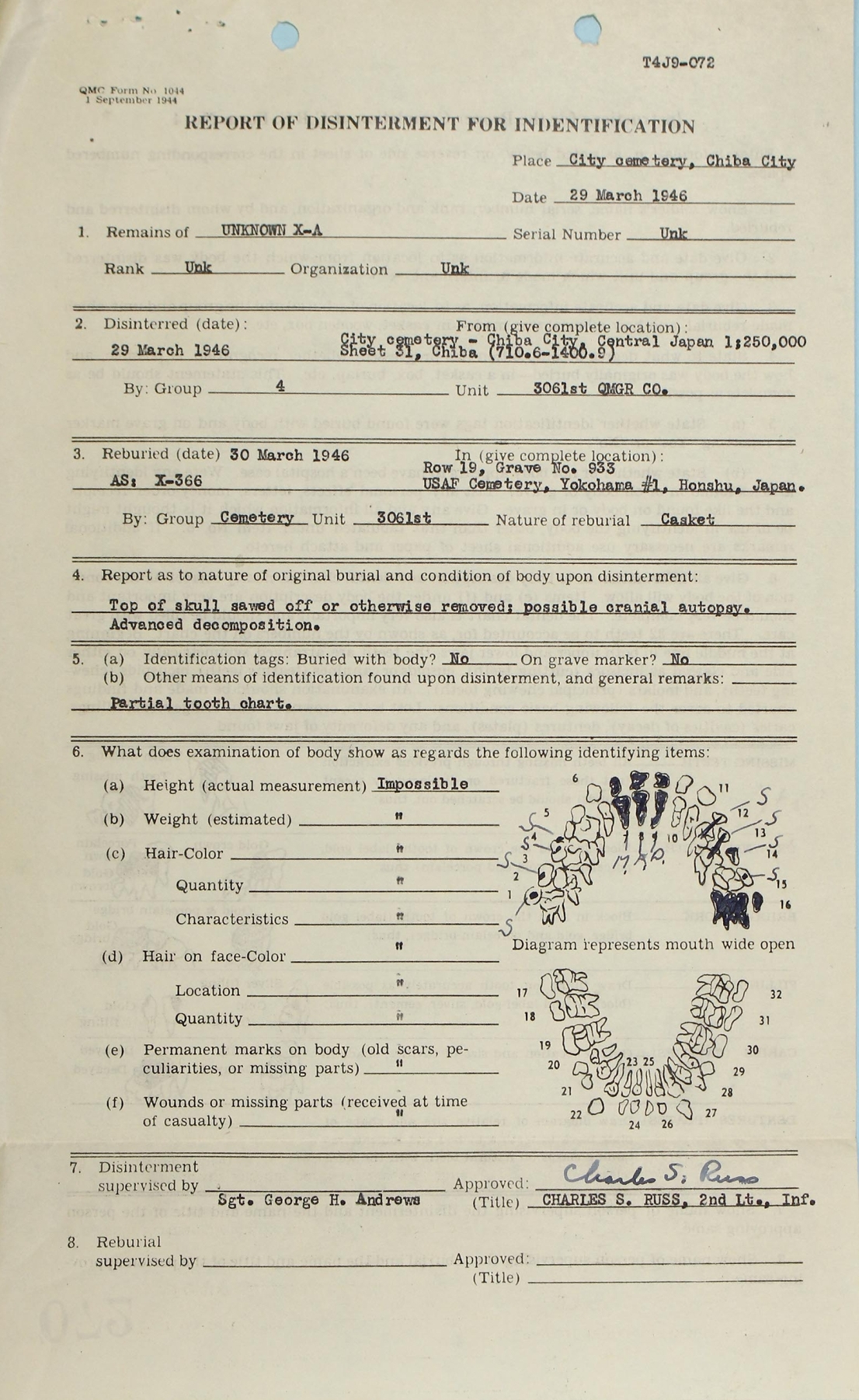 REPORT OF DISINTERMENT FOR IDENTIFICATION