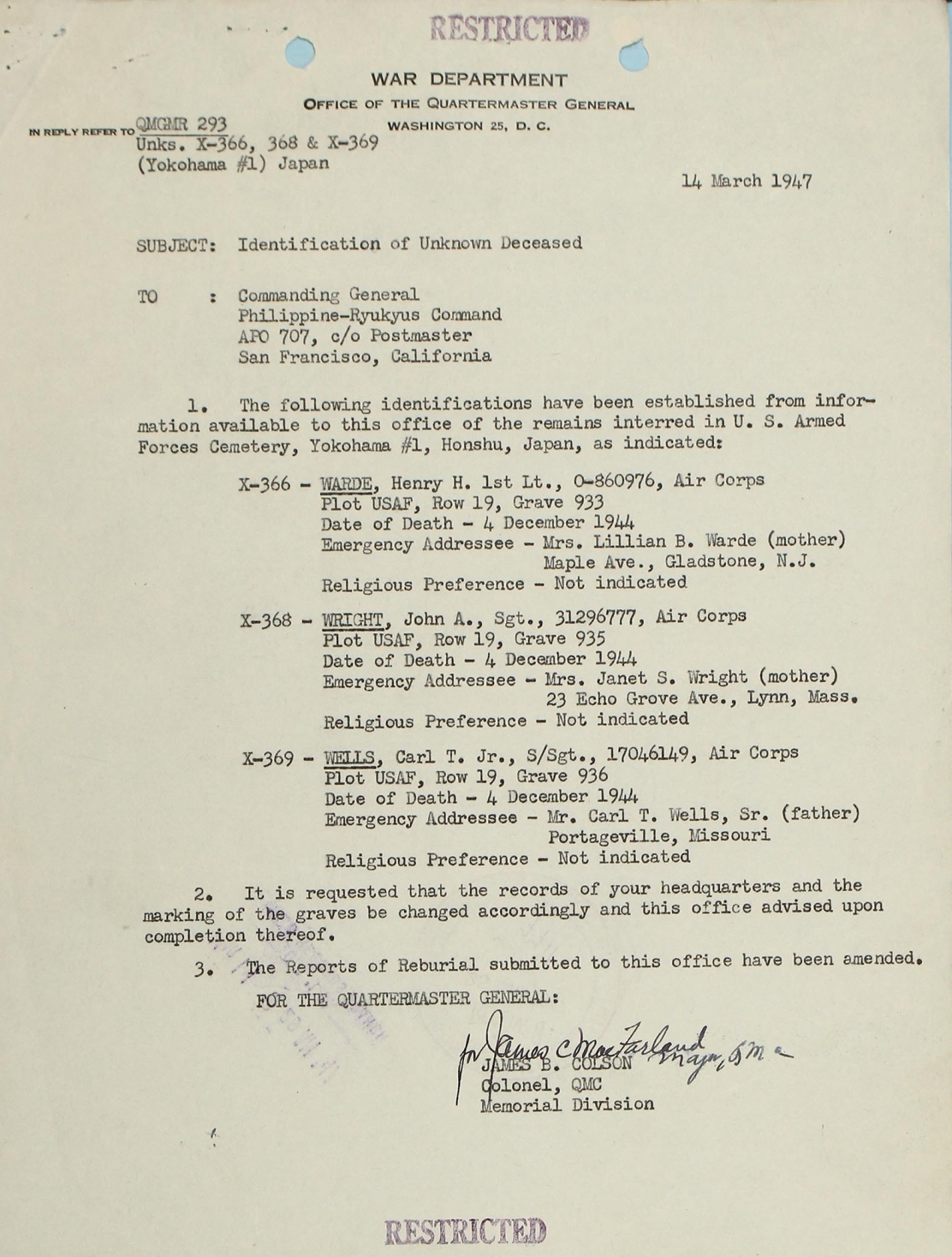 WAR DEPARTMENT