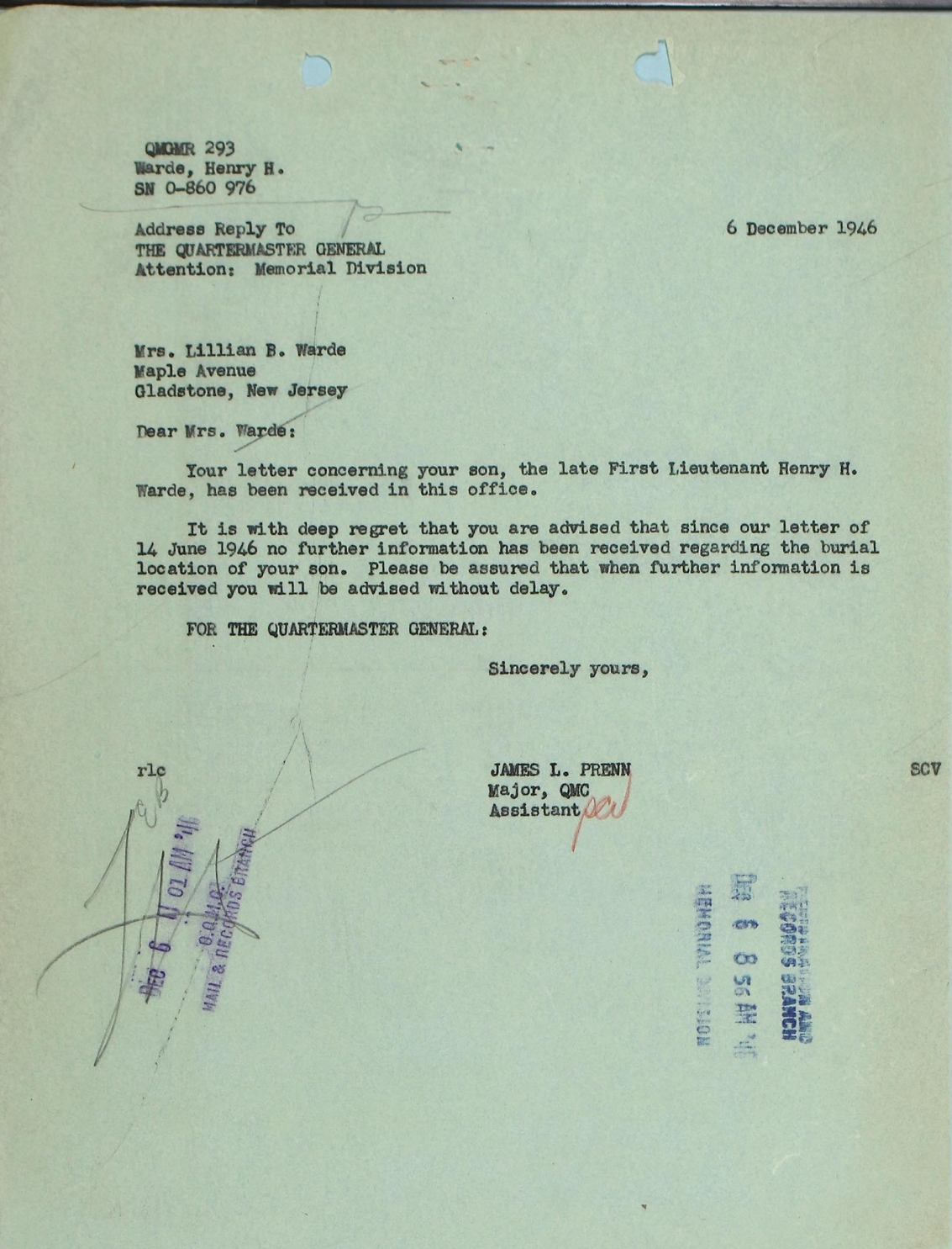 with information about Lt Warde.