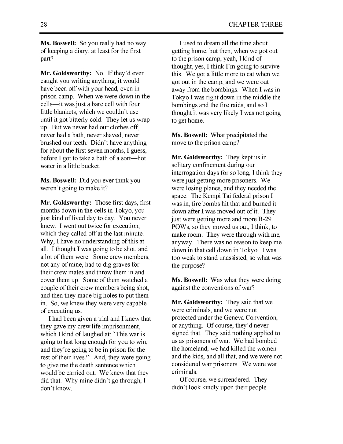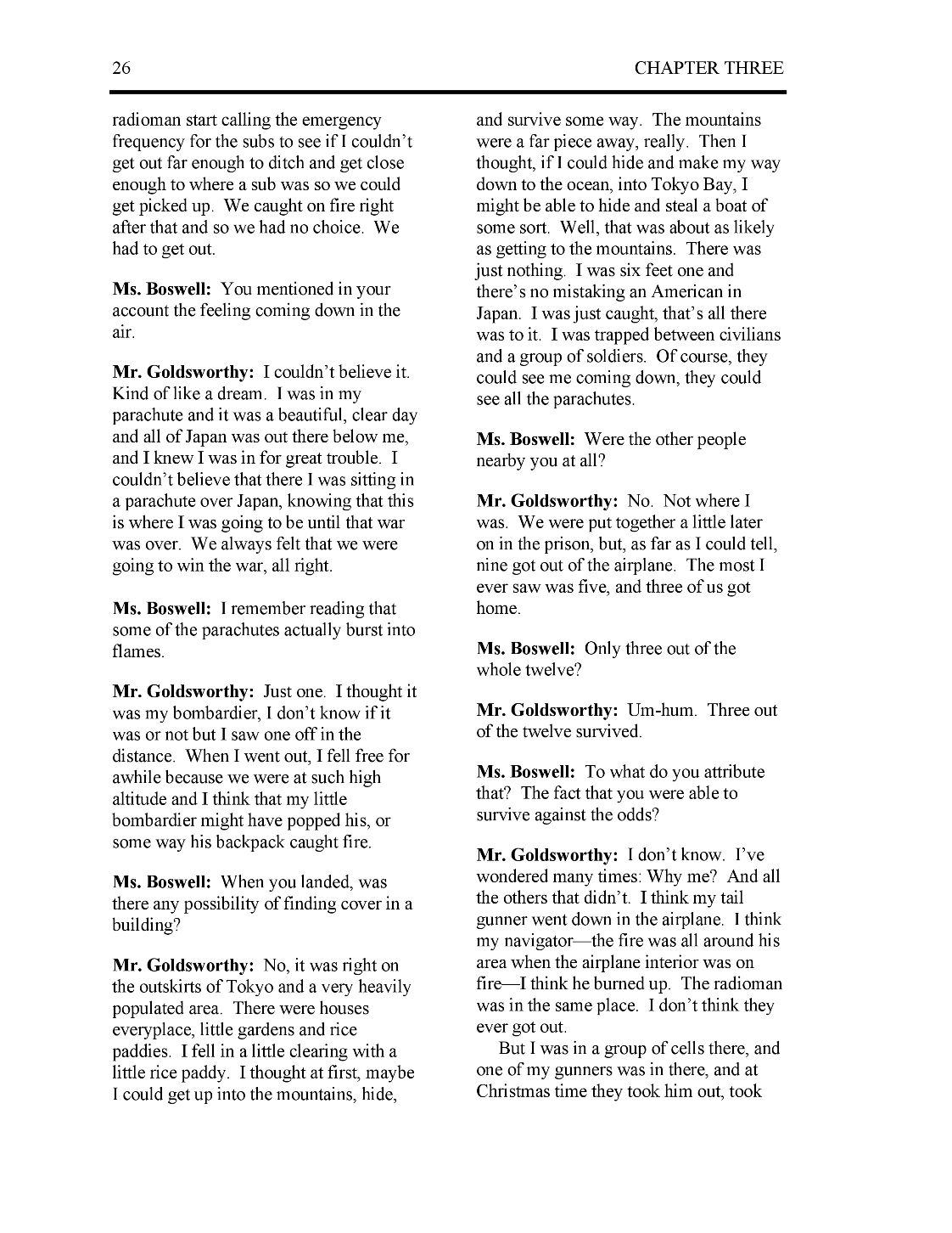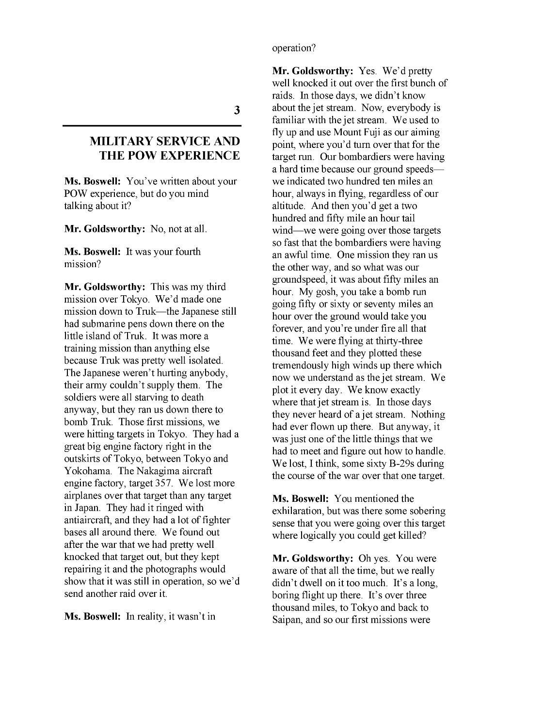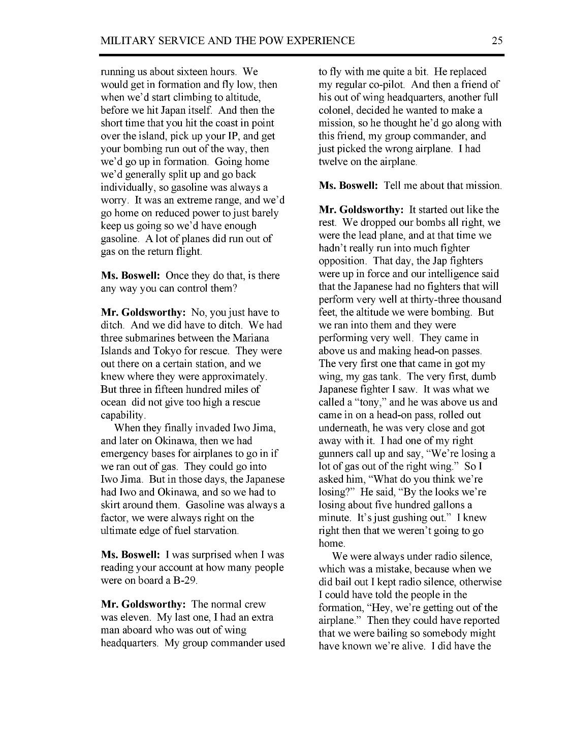 These five pages from Major Goldsworthy's Oral History BACK TO TOP |