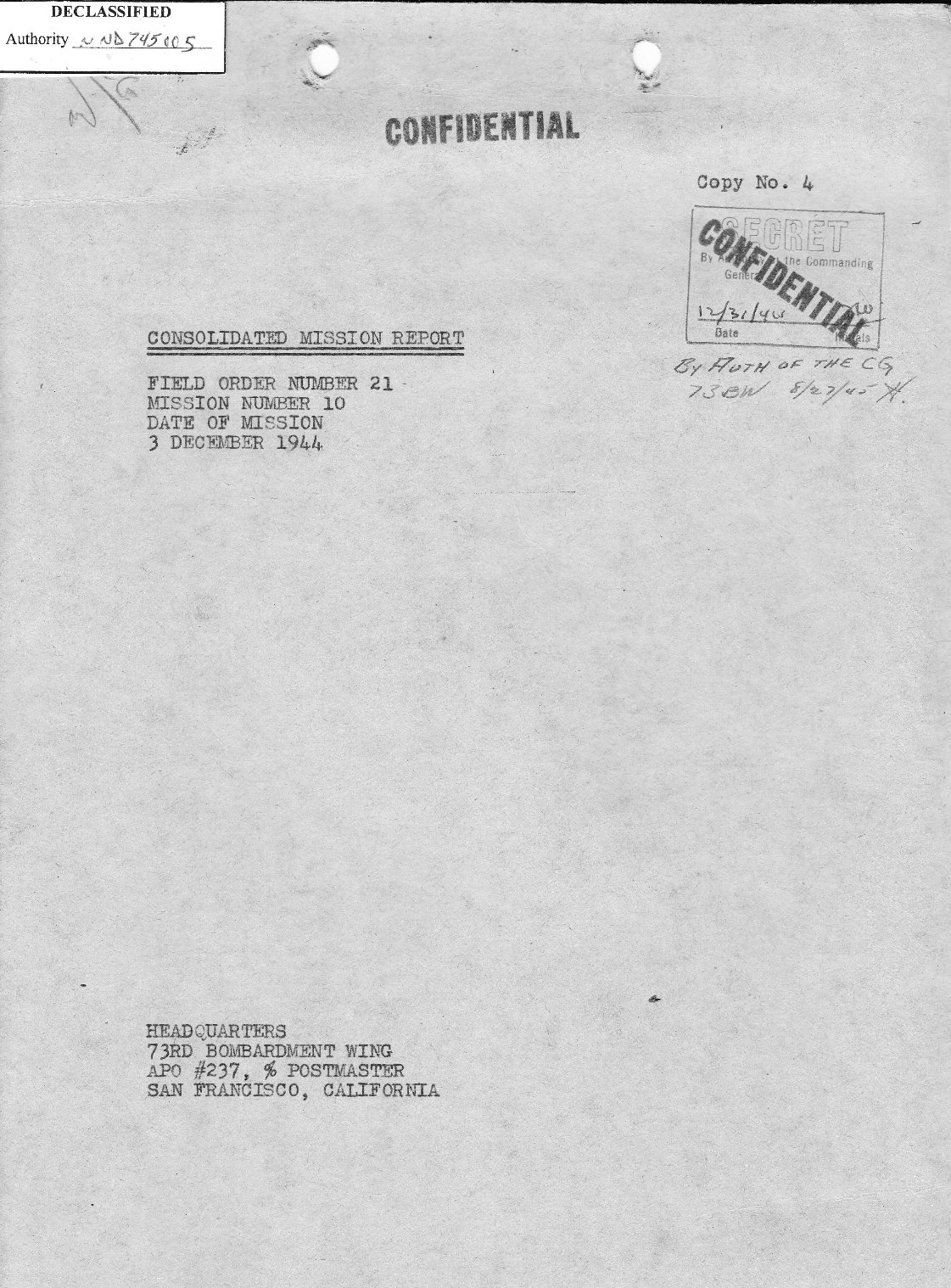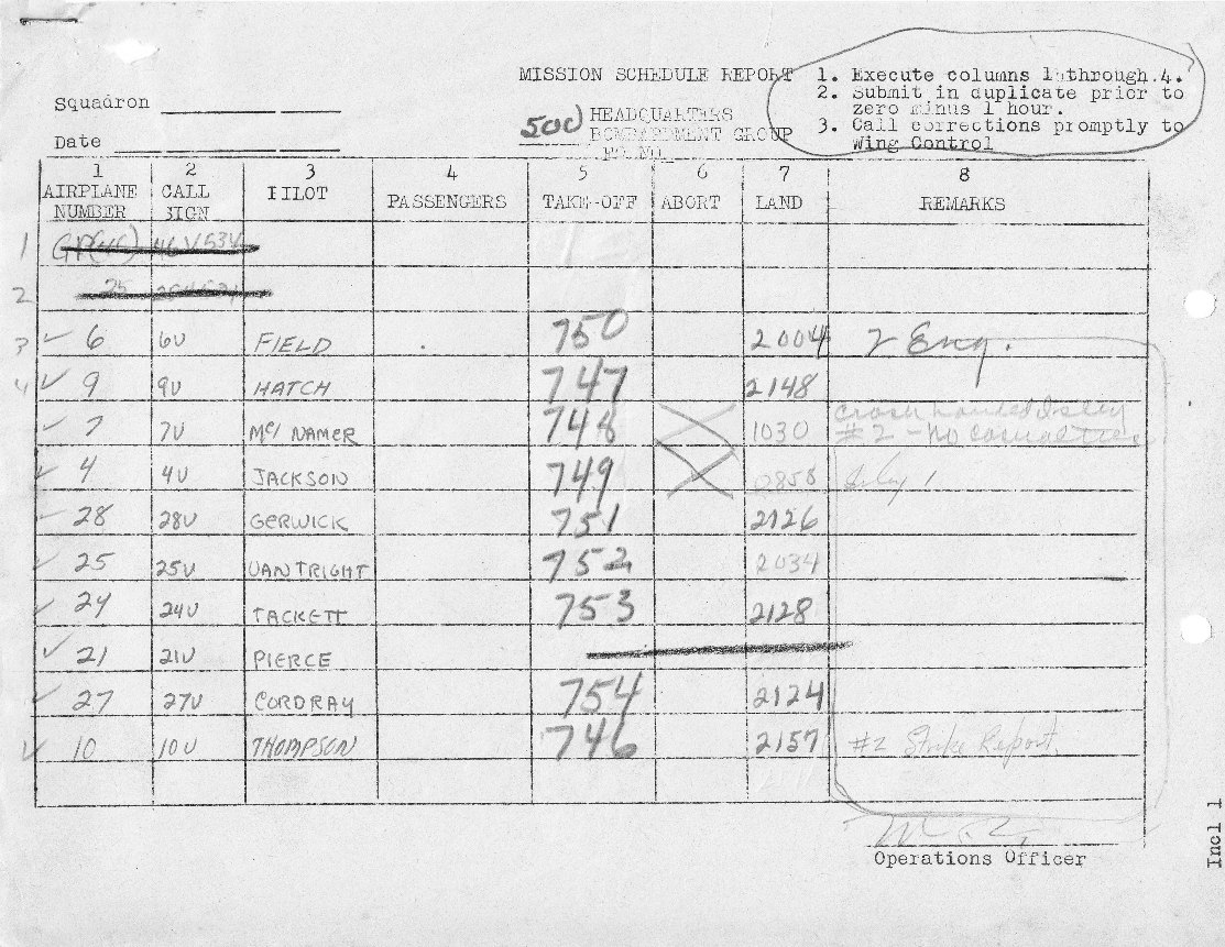 73rd Bomb Wing Mission No. 10 was the fourth flown by Major Goldsworthy.
