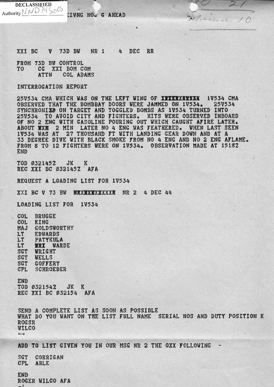 MISSION INTERROGATION REPORT