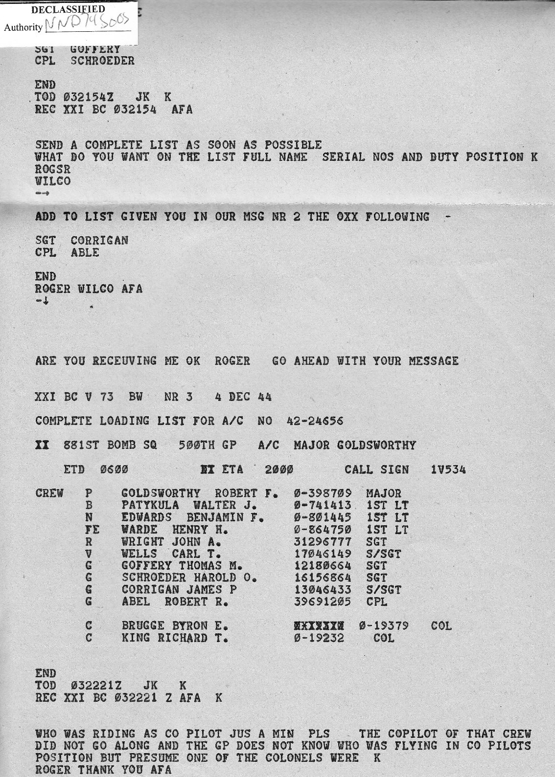 His Pilot on the first three missions was 2nd Lt Sollock.