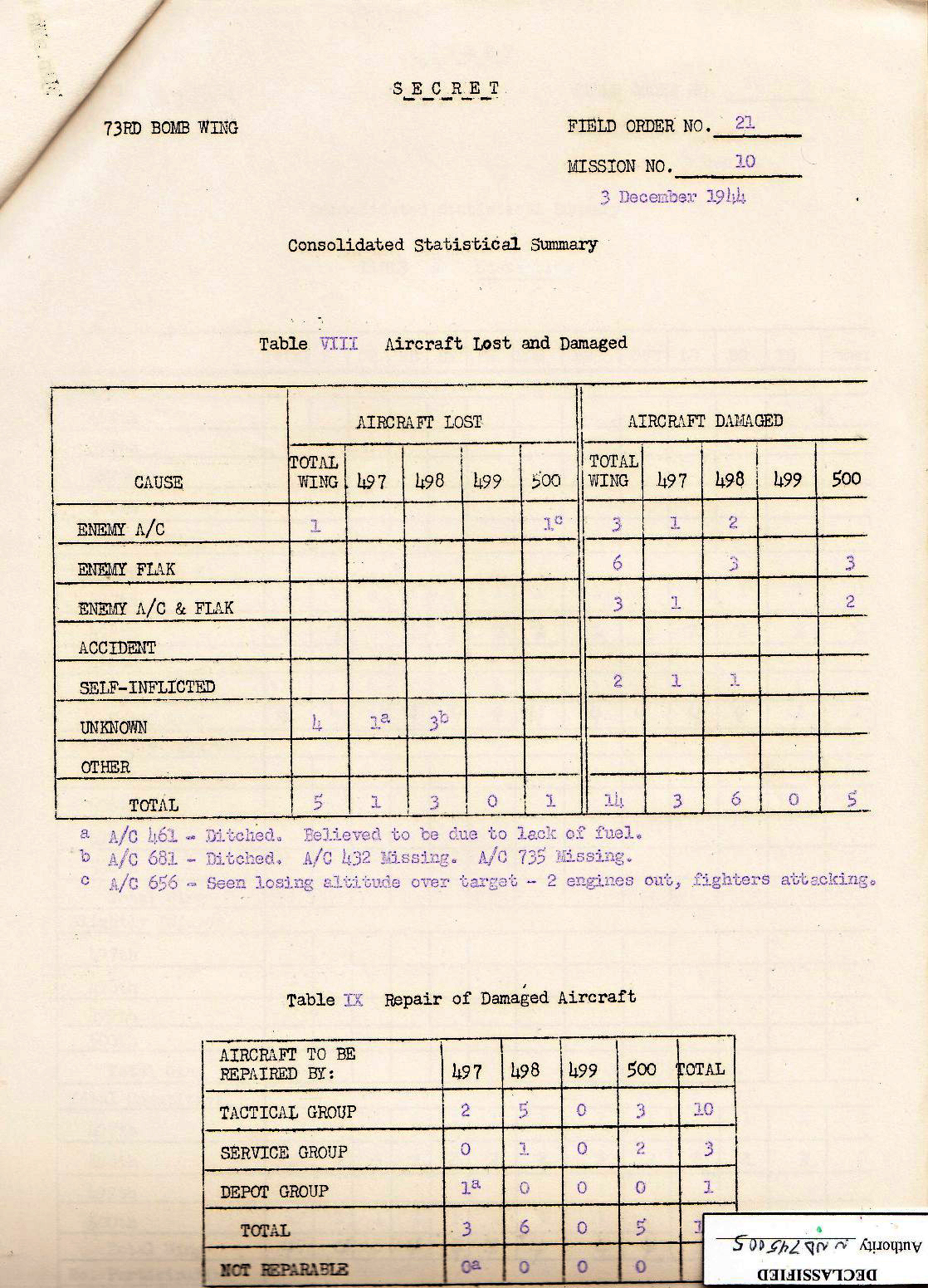 In Table VIII are the number of Aircraft Lost and Damaged.