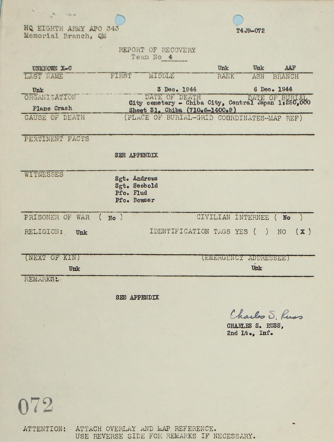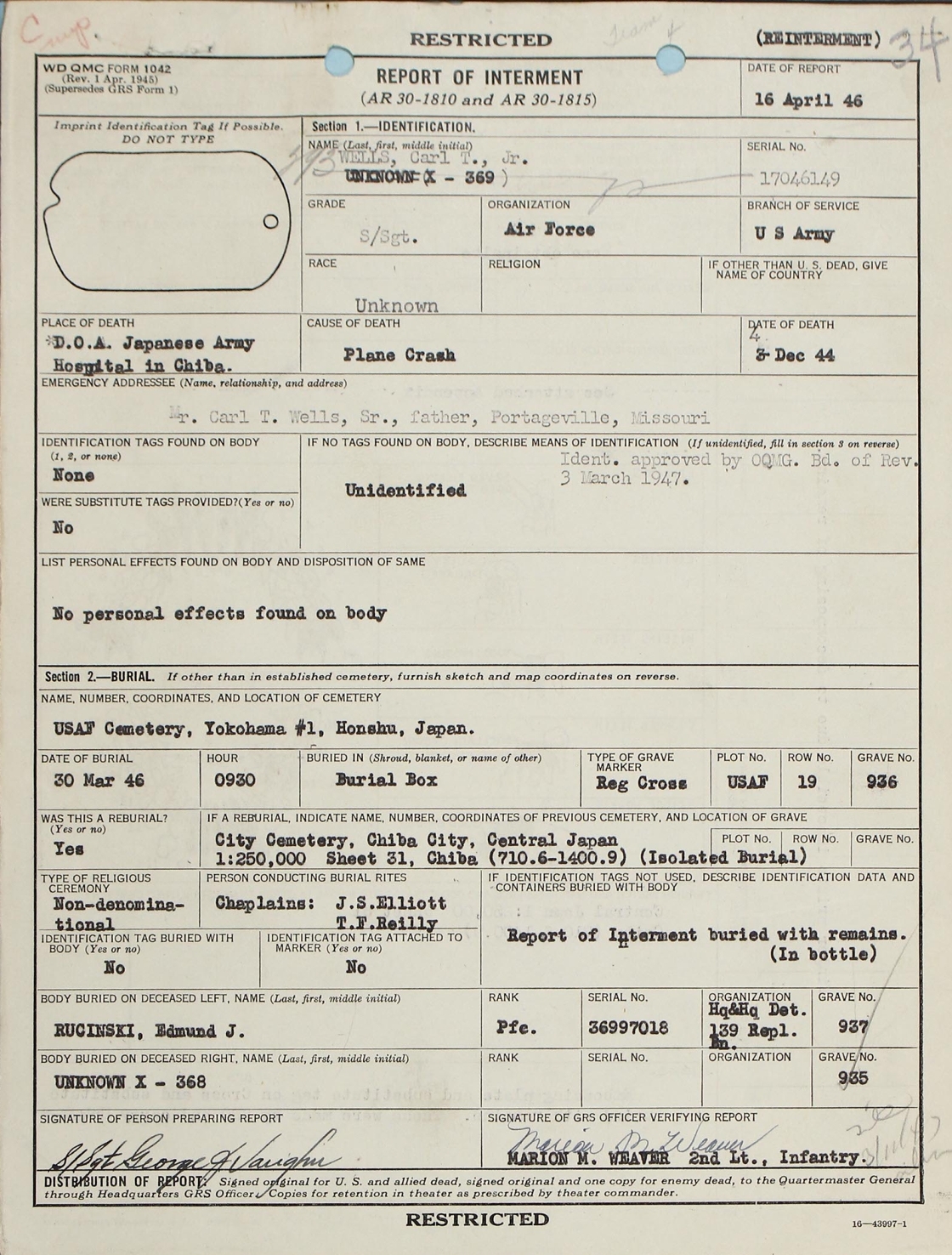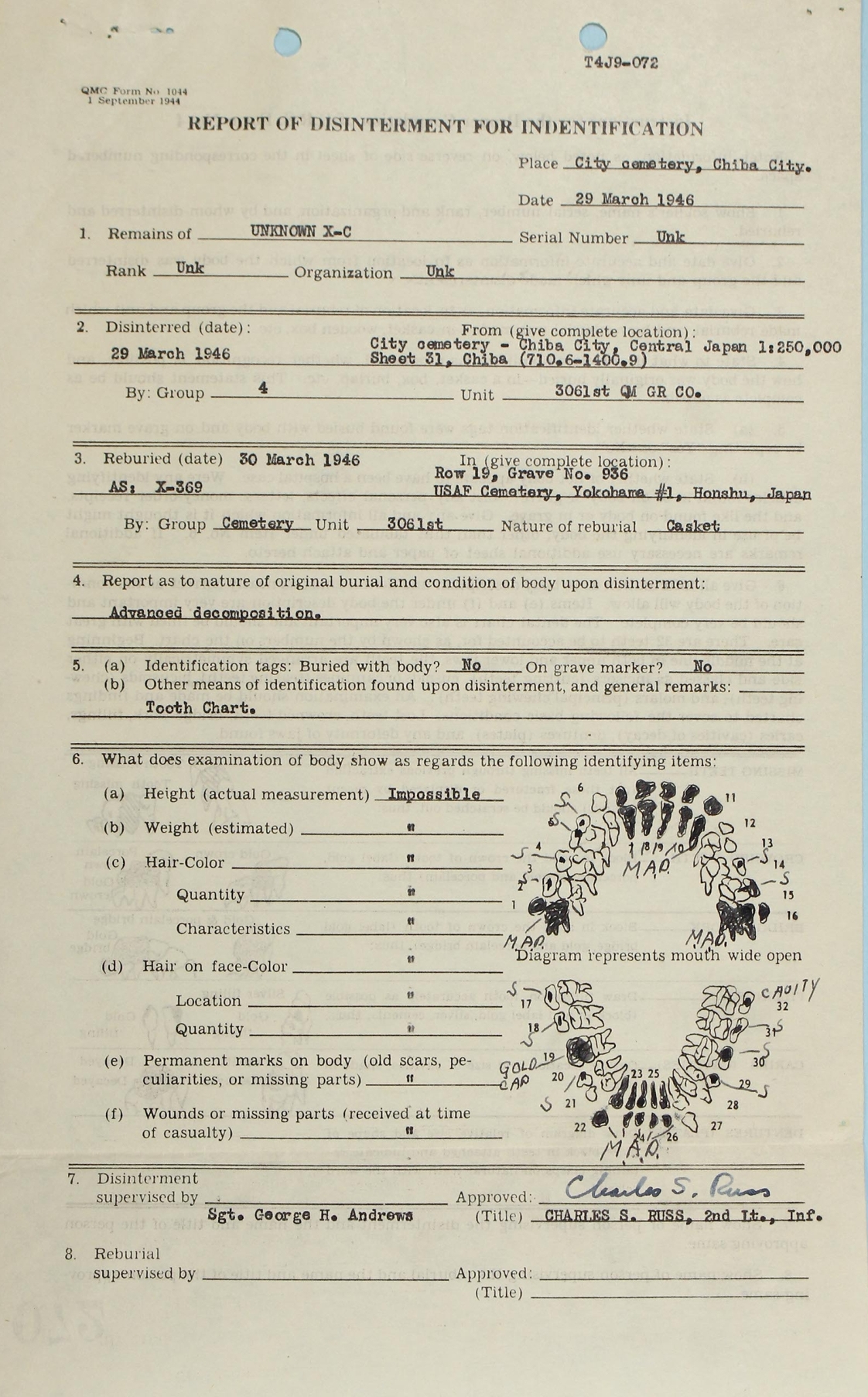 REPORT OF DISINTERMENT FOR IDENTIFICATION
