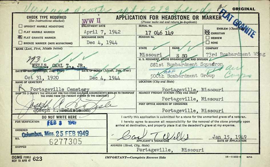 STAFF SGT CARL T WELLS, JR source: Find A Grave |