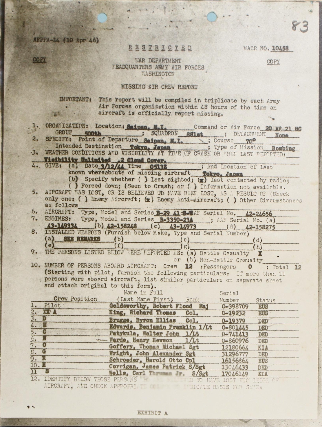 MISSING AIR CREW REPORT NO. 10458 ( COPY )