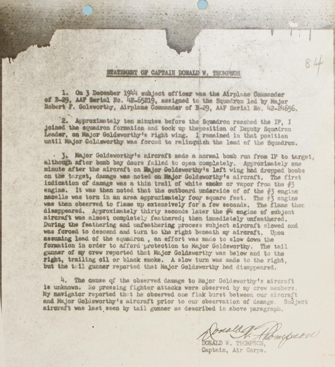 STATEMENT OF CAPTAIN DONALD W THOMPSON