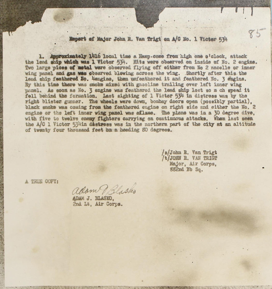 REPORT OF MAJOR JOHN R VAN TRIGT