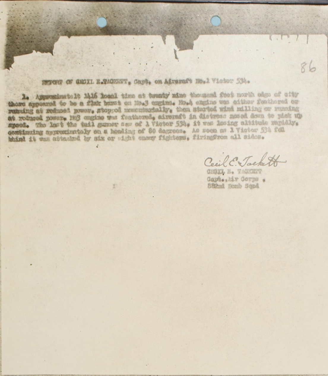 REPORT OF CAPT CECIL E TACKETT