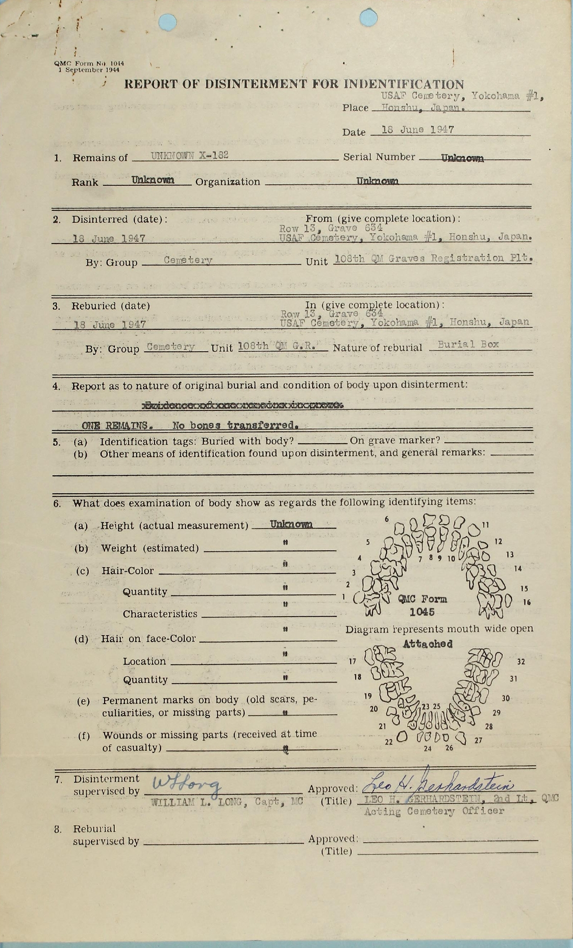 and subsequent disinterment and identification.