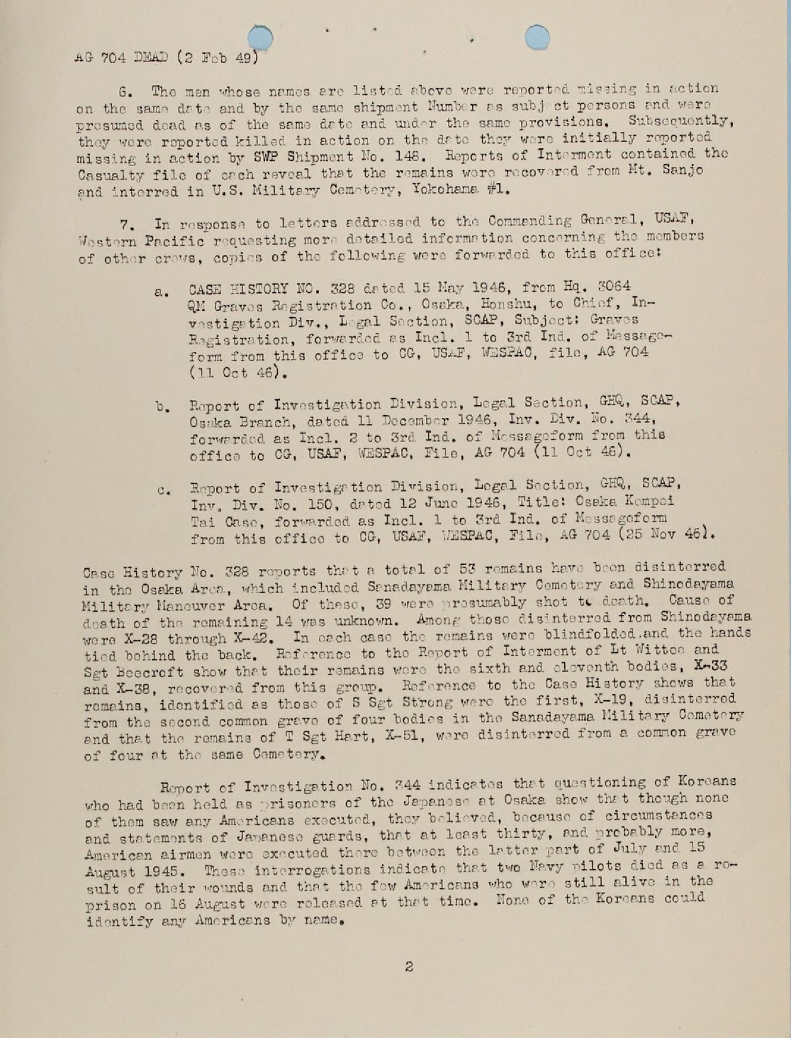 CHANGE IN DATE OF DEATH 2 FEBRUARY 1949 PAGE 2