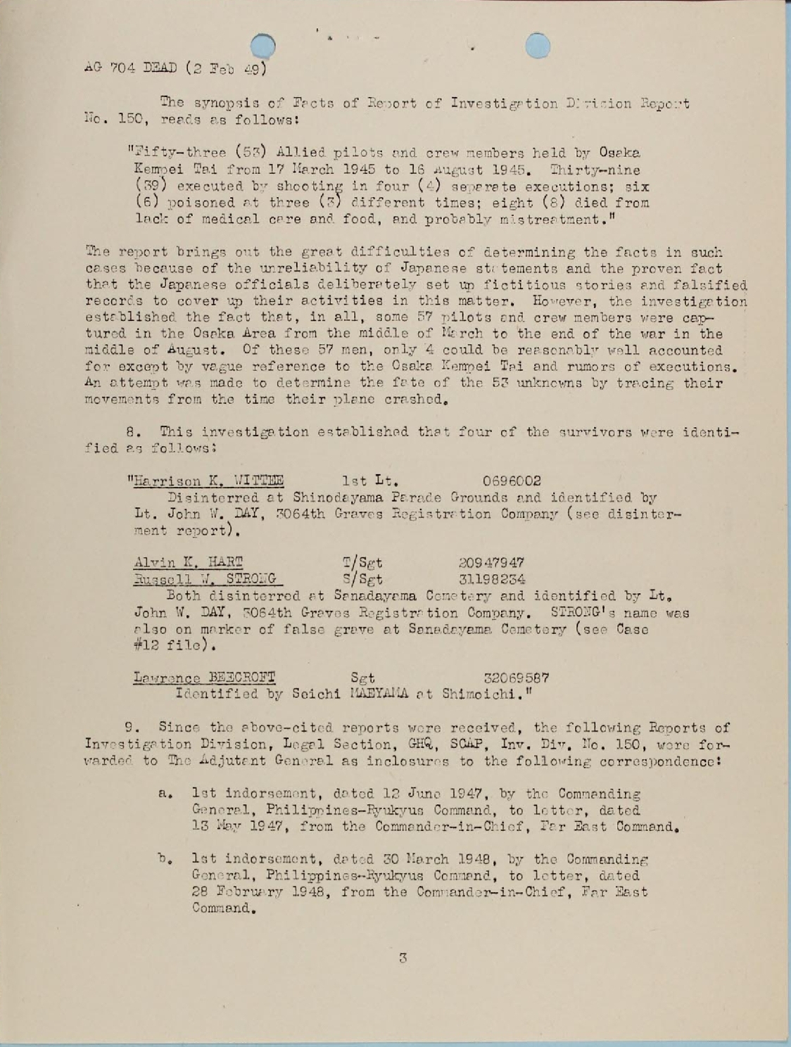 CHANGE IN DATE OF DEATH 2 FEBRUARY 1949 PAGE 3