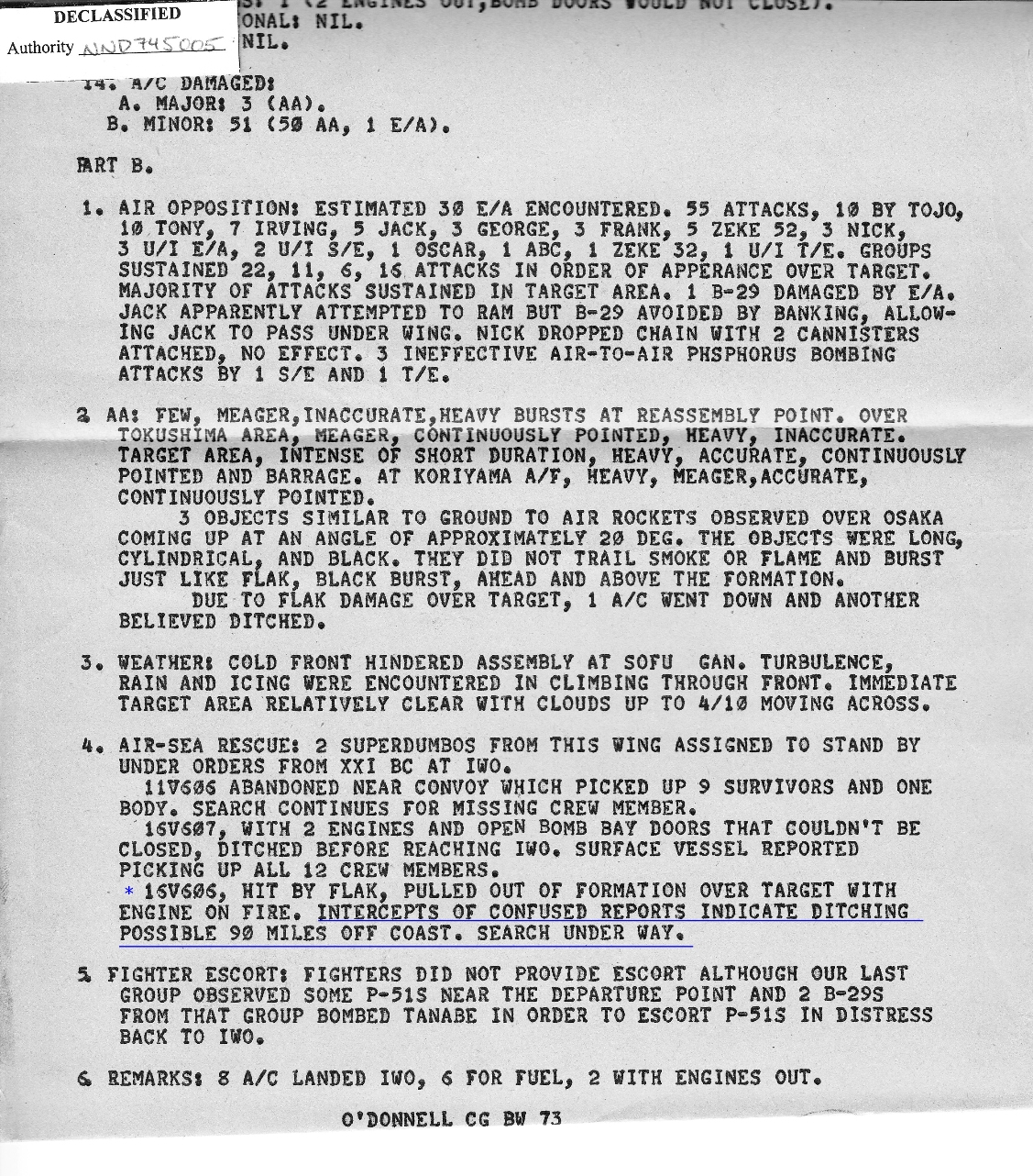 noting the location where the B-29 flown by Lt Franklin Crowe went