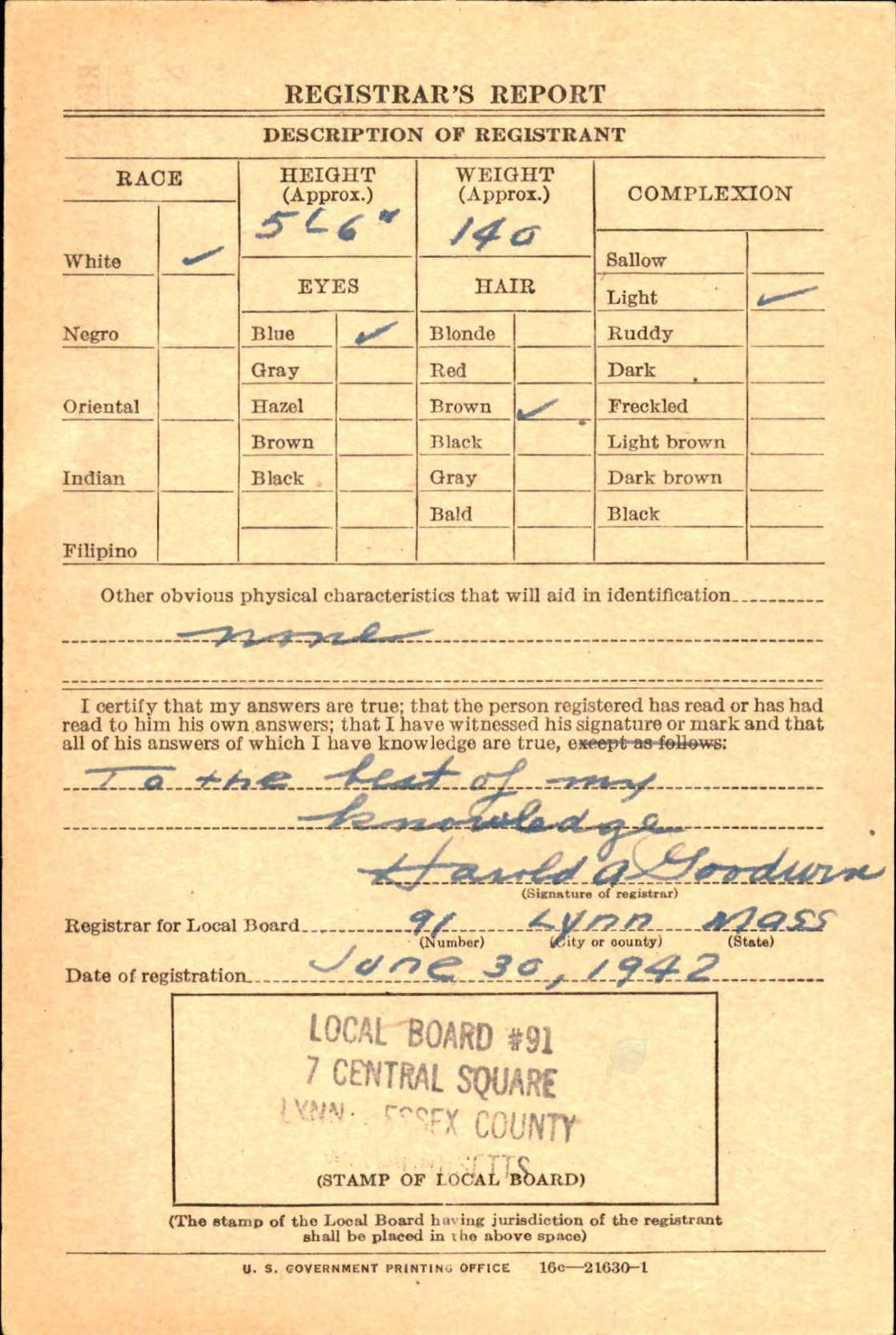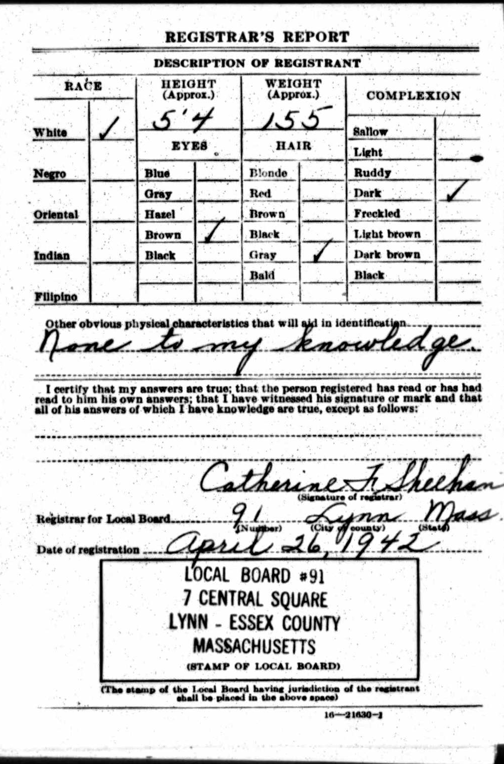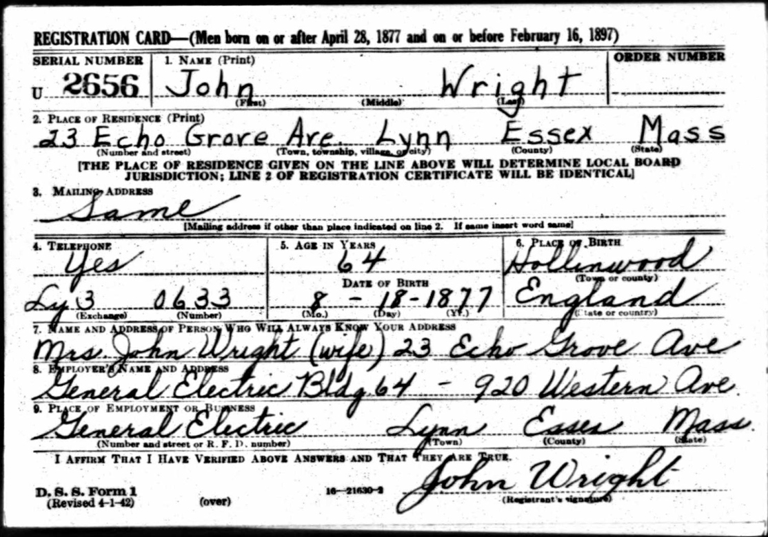 MR JOHN WRIGHT WWII REGISTRATION CARD