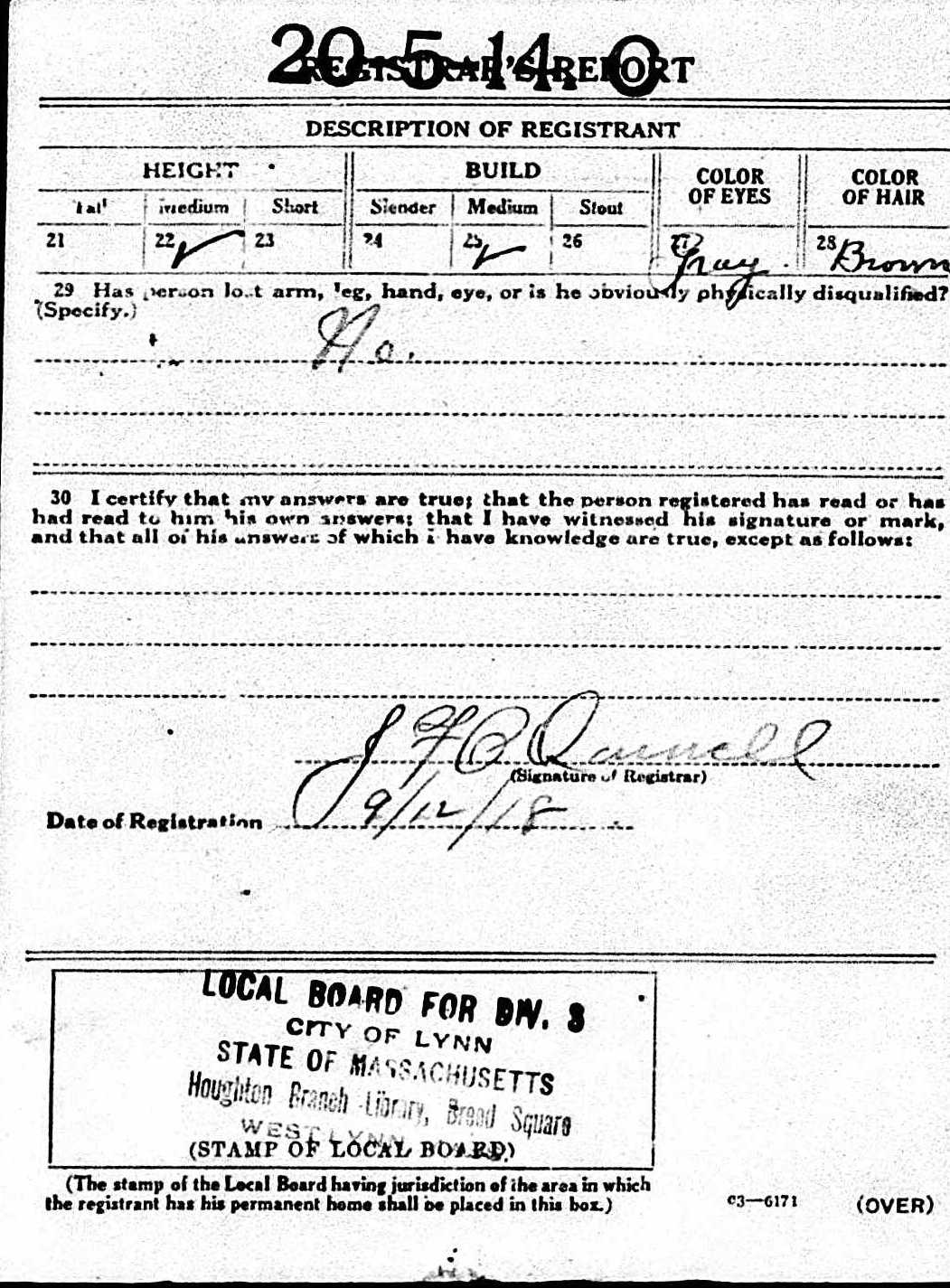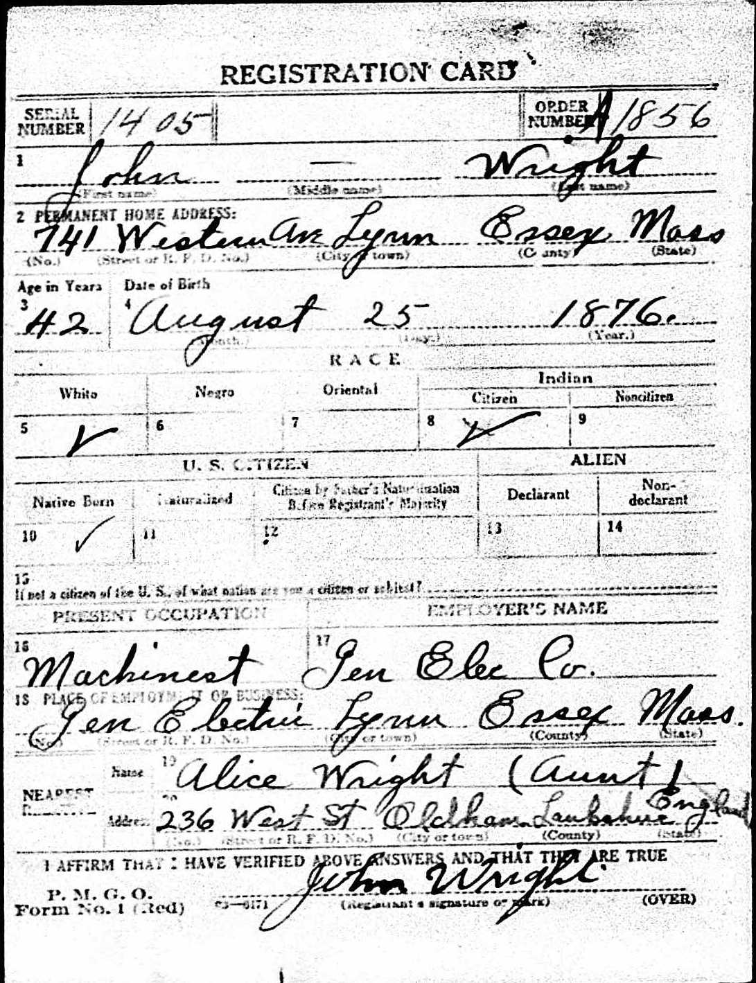 The first registration card is for John Alexander Wright source: Ancestry.com |