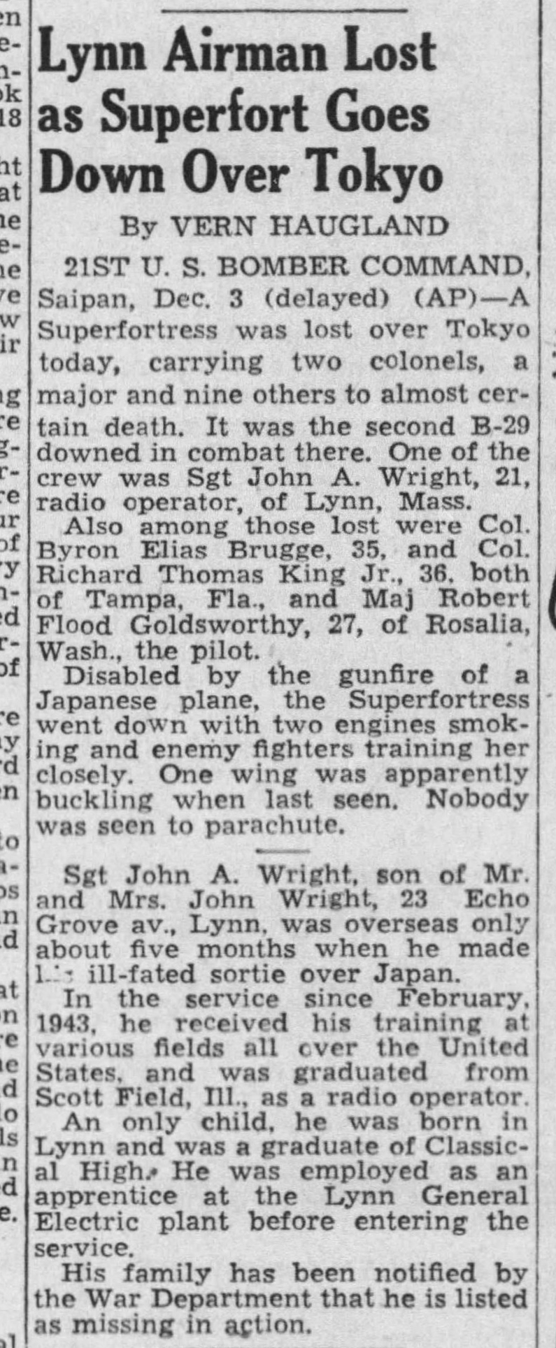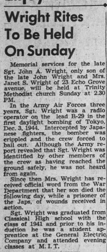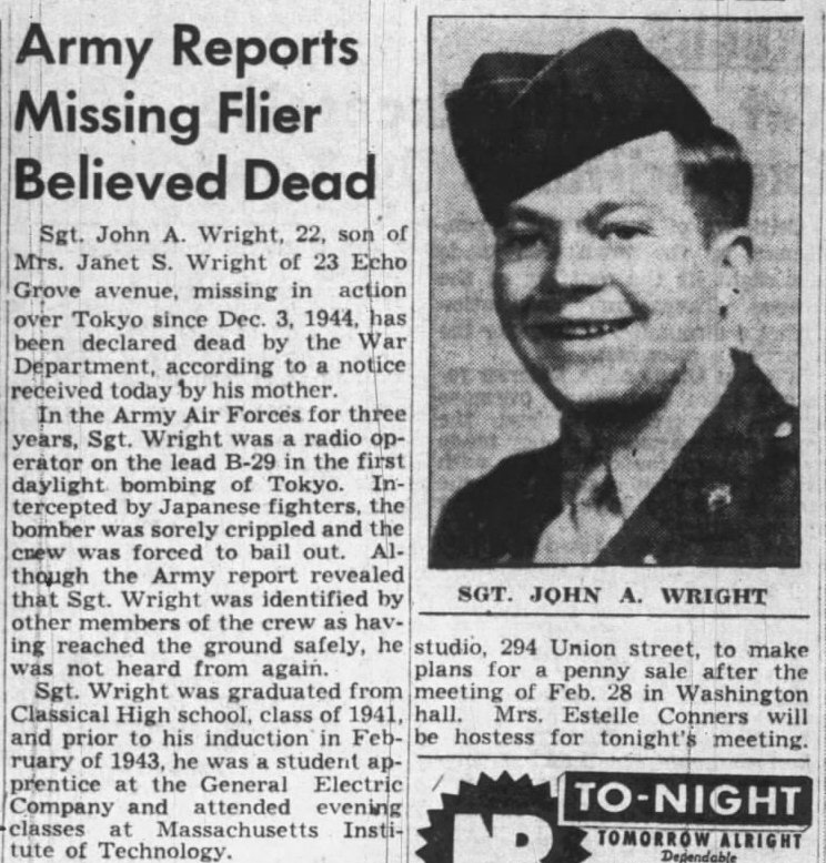 with news that Sgt Wright was Declared Dead.