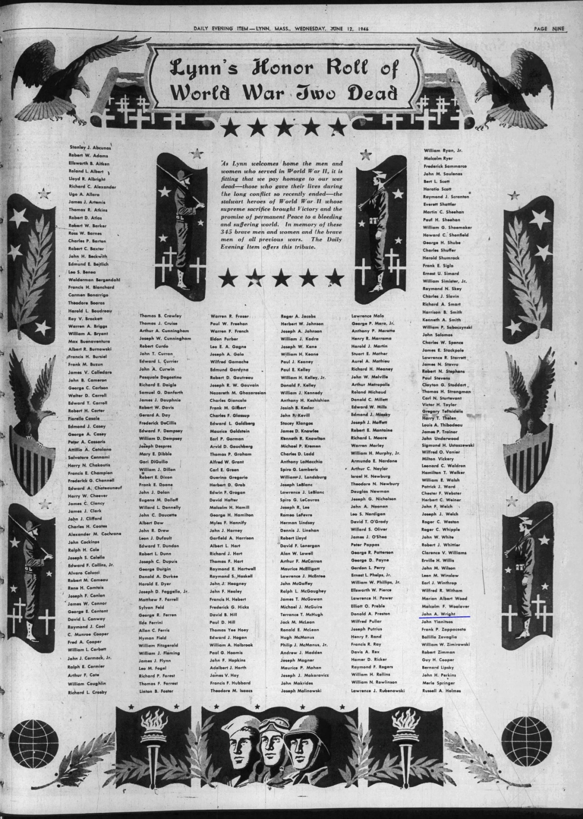 In here are the names of Lynn World War II Dead.