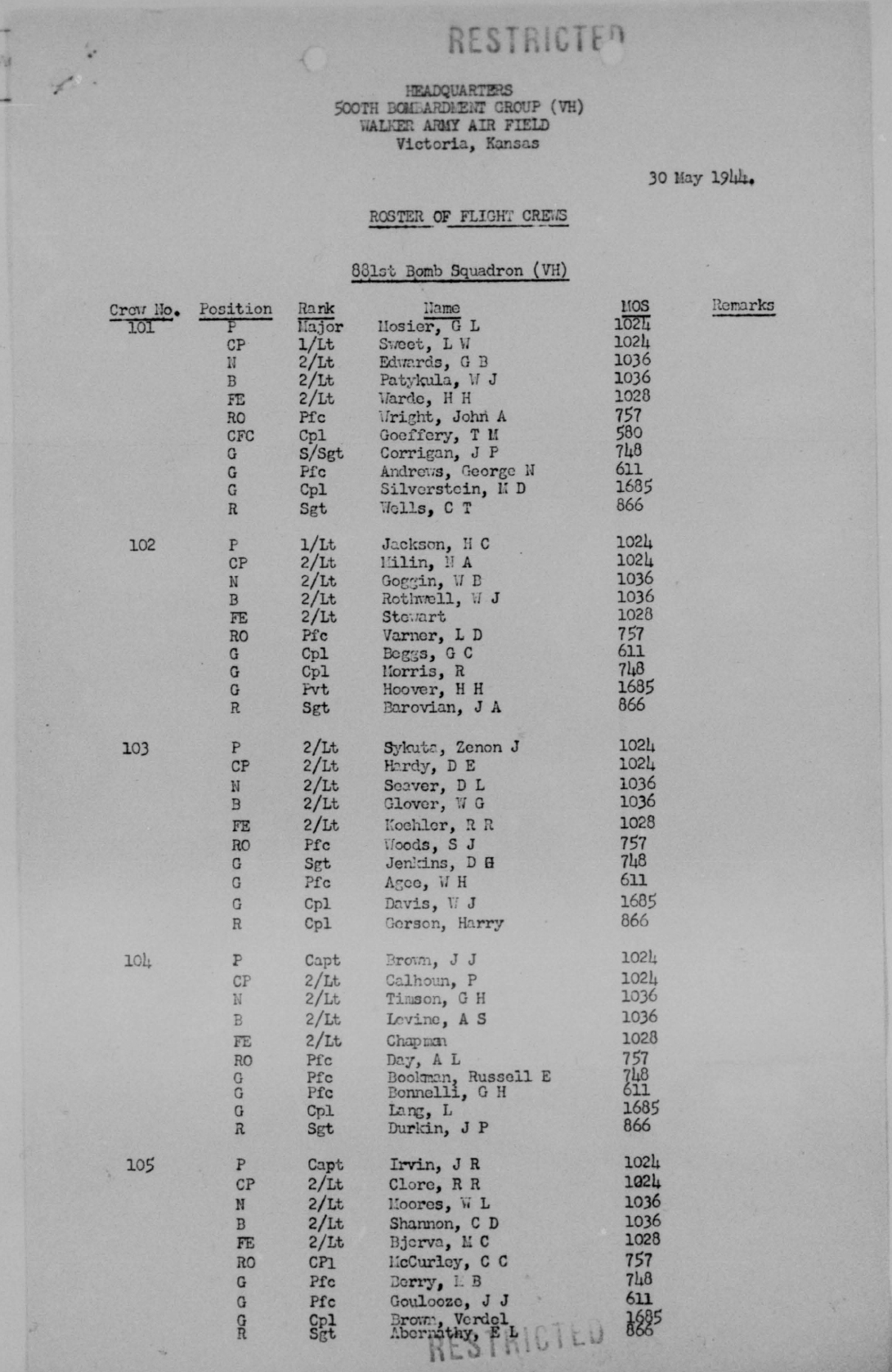 Roster of Flight Crews.